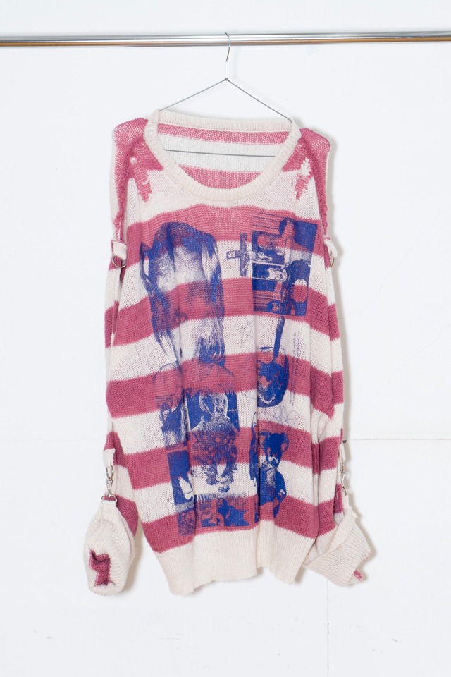 [Autumn Winter Collection] EMAW24KN01 ガーゼシャツのようなディテールを落とし込んだボーダーニット。 今シーズンの象徴的なグラフィックをフロントにプリントした目を引く一着。 長い袖は袖口がフック仕様になっており、アーム部分に施されたD缶に取り付けることで お好みのサイズ感、シルエットに調整可能です。 またインサイドアウト仕様で縫製部分等より表情のある風合いに仕上がっています。 薄手の生地感でとても軽量で柔らかく、ドレープ感の強いシルエットです。 ゆったりとしたビッグシルエットで男女問わずご着用いただけます。 Color: WHITE/PINK Size: Free Material: Acrylic 55% , Nylon 30% , Wool 15% [Measuring] 着丈/ Length: 76cm 肩幅 / Shoulder Width: 70cm 身幅 / Width: 78cm 袖丈 / Sleeve Length: 60cm~78cm 着用モデル / Model: 170cm 【配送について / shipping】 ご注文いただいてから一週間以内の発送予定です。 お客様都合による交換・返品は一切お受けできませんので、予めご了承下さい。 ・[email protected] 上記のアドレスからのメールが届くよう設定お願い致します。 ご不明な点がございましたら上記連絡先までご連絡くださいませ。 ※ BASEのシステム上、数ヶ月後の発送処理が不可能なため一度配送完了メールをお送りさせていただきます。BASE上では、配送完了となりますが、実際の商品発送は記載されているお届け予定時期より順次行いますのでご注意くださいませ。 ご不明な点がございましたら上記連絡先までご連絡くださいませ。