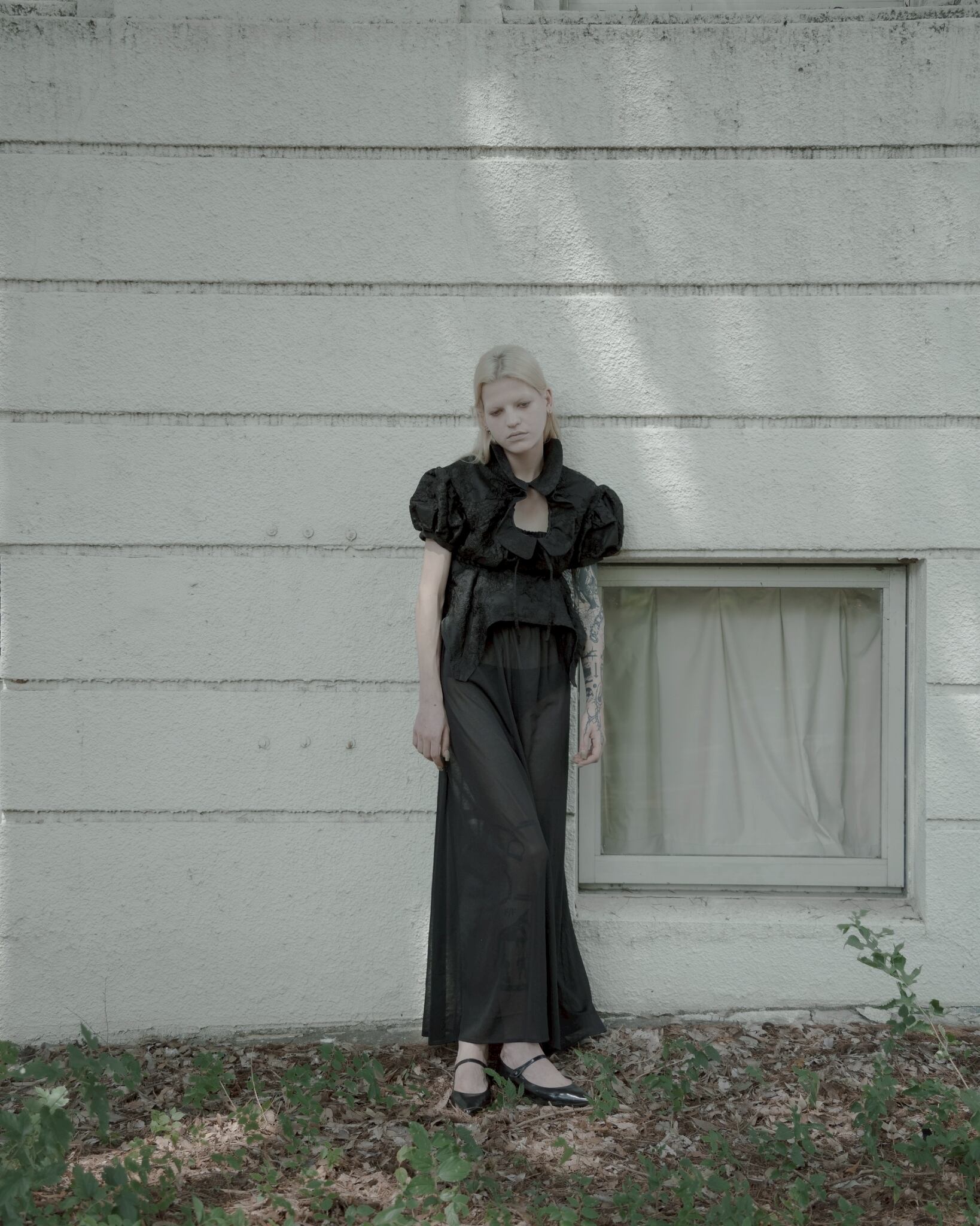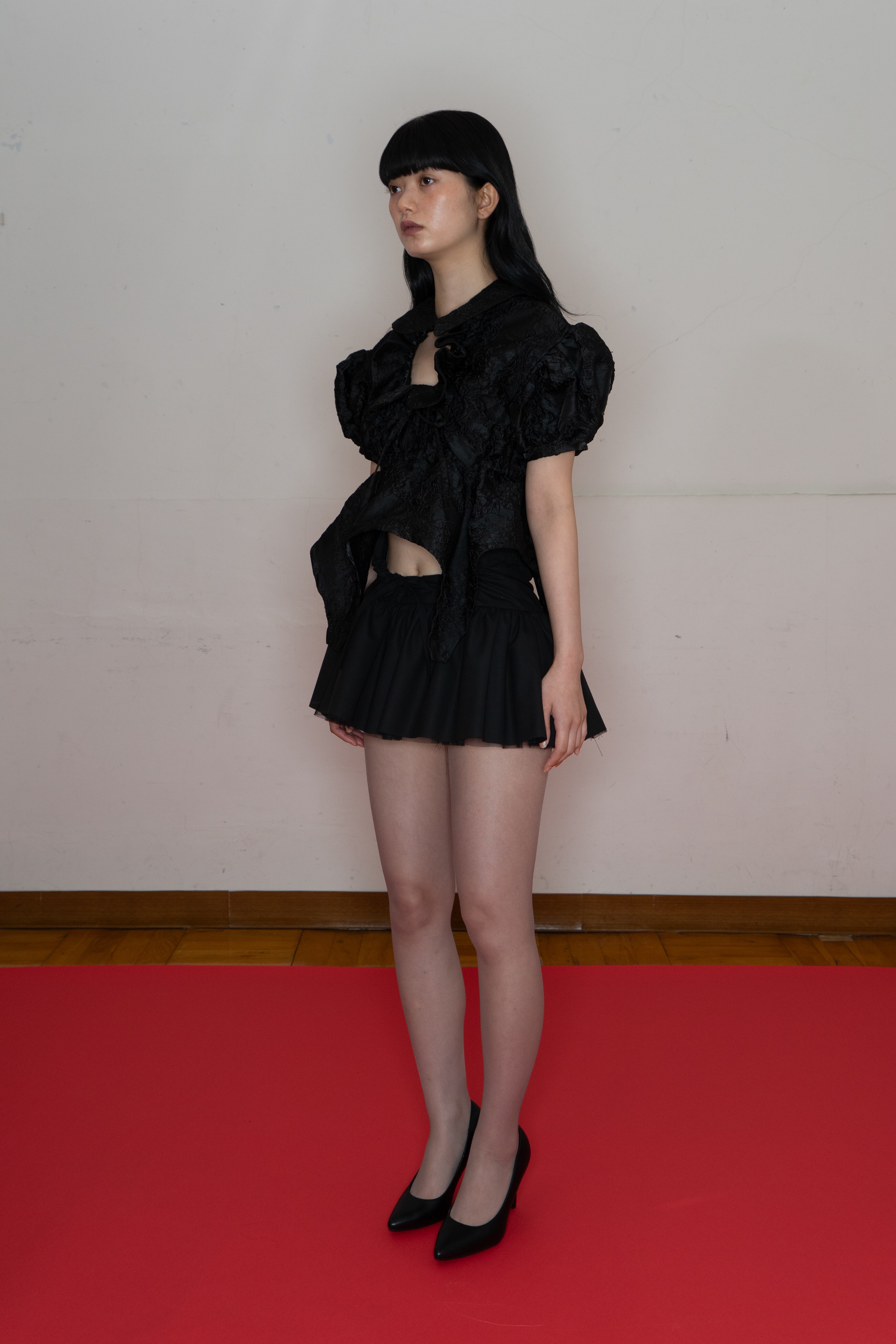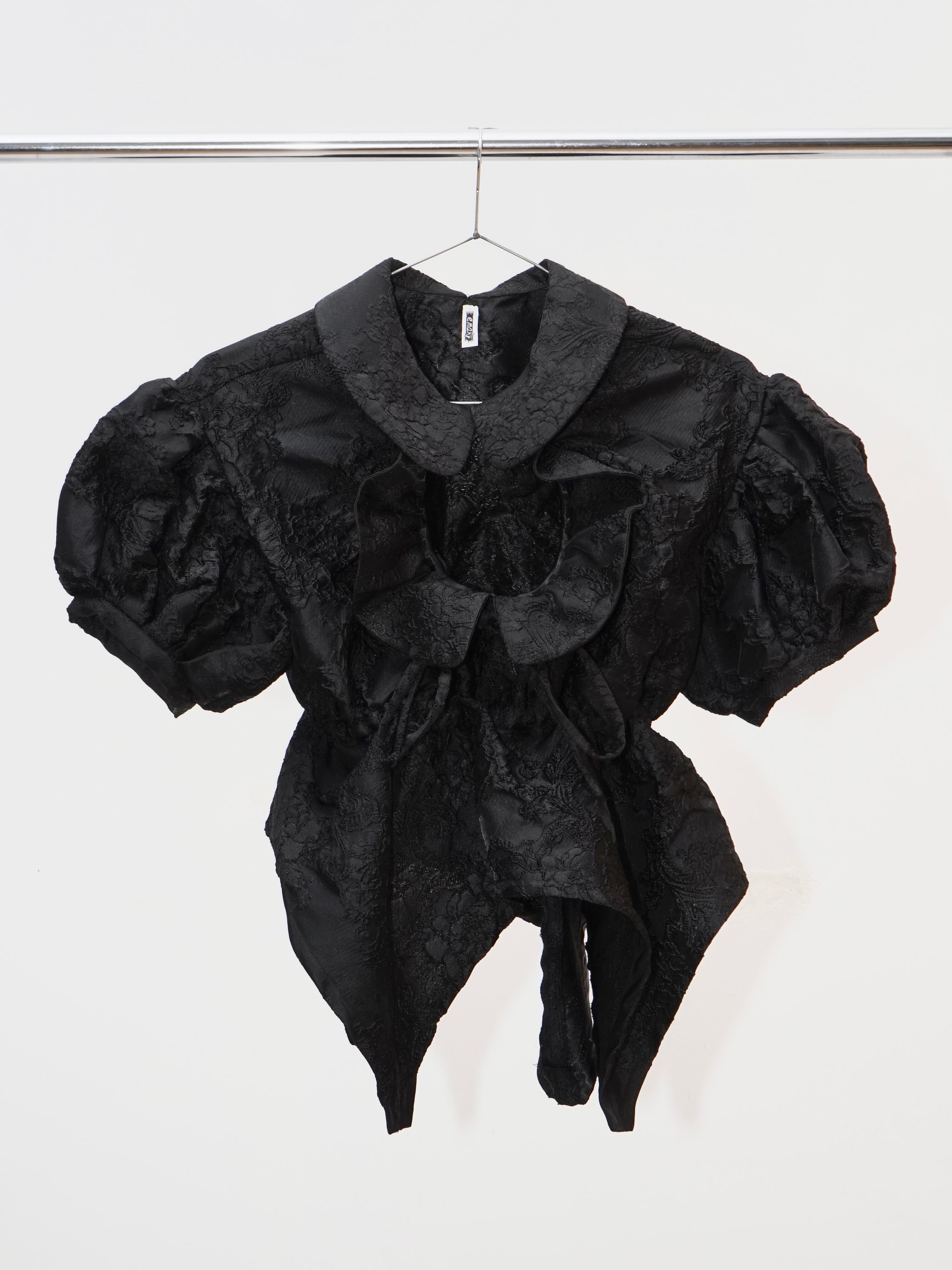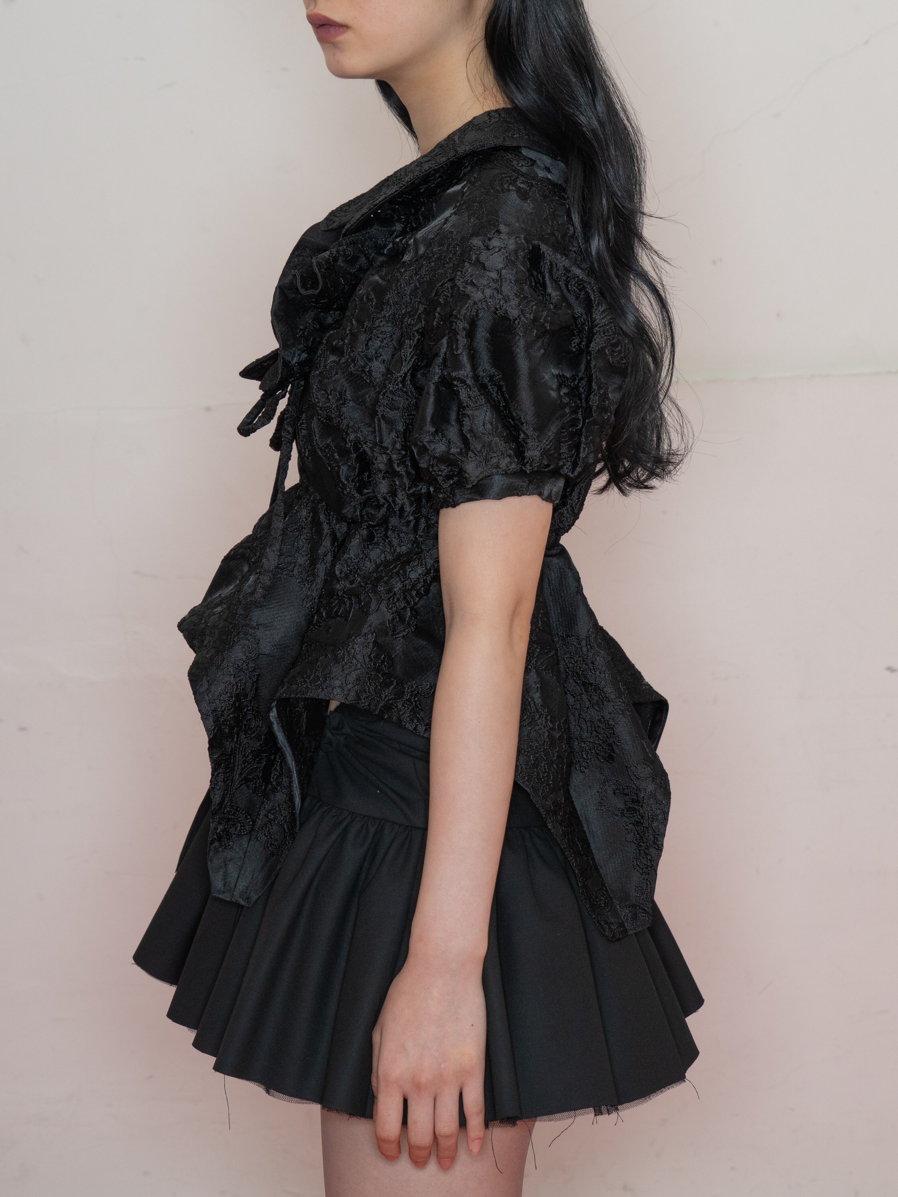 ジャガード素材でハリ感があり、お腹のshapeがcuteなパフブラウス。