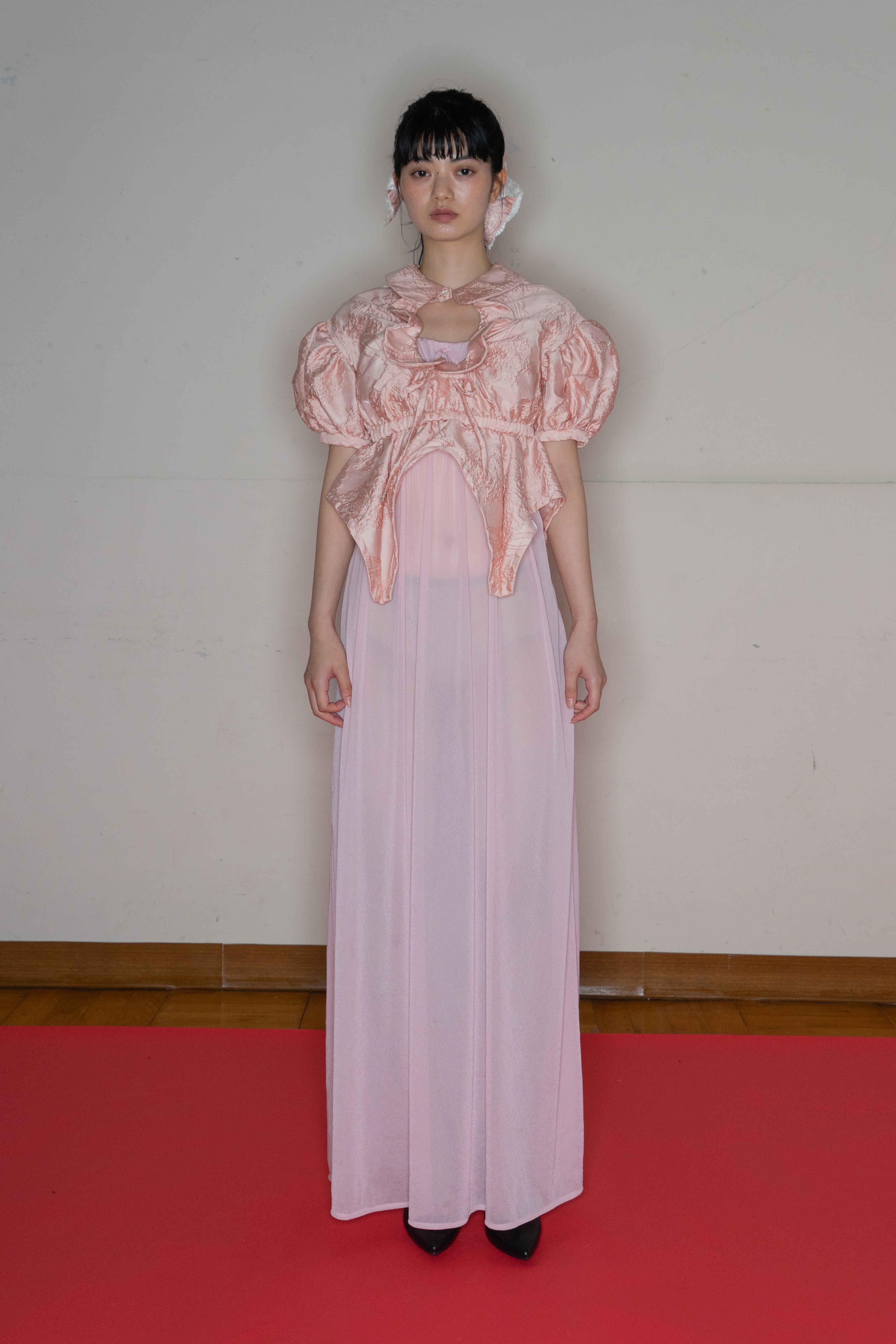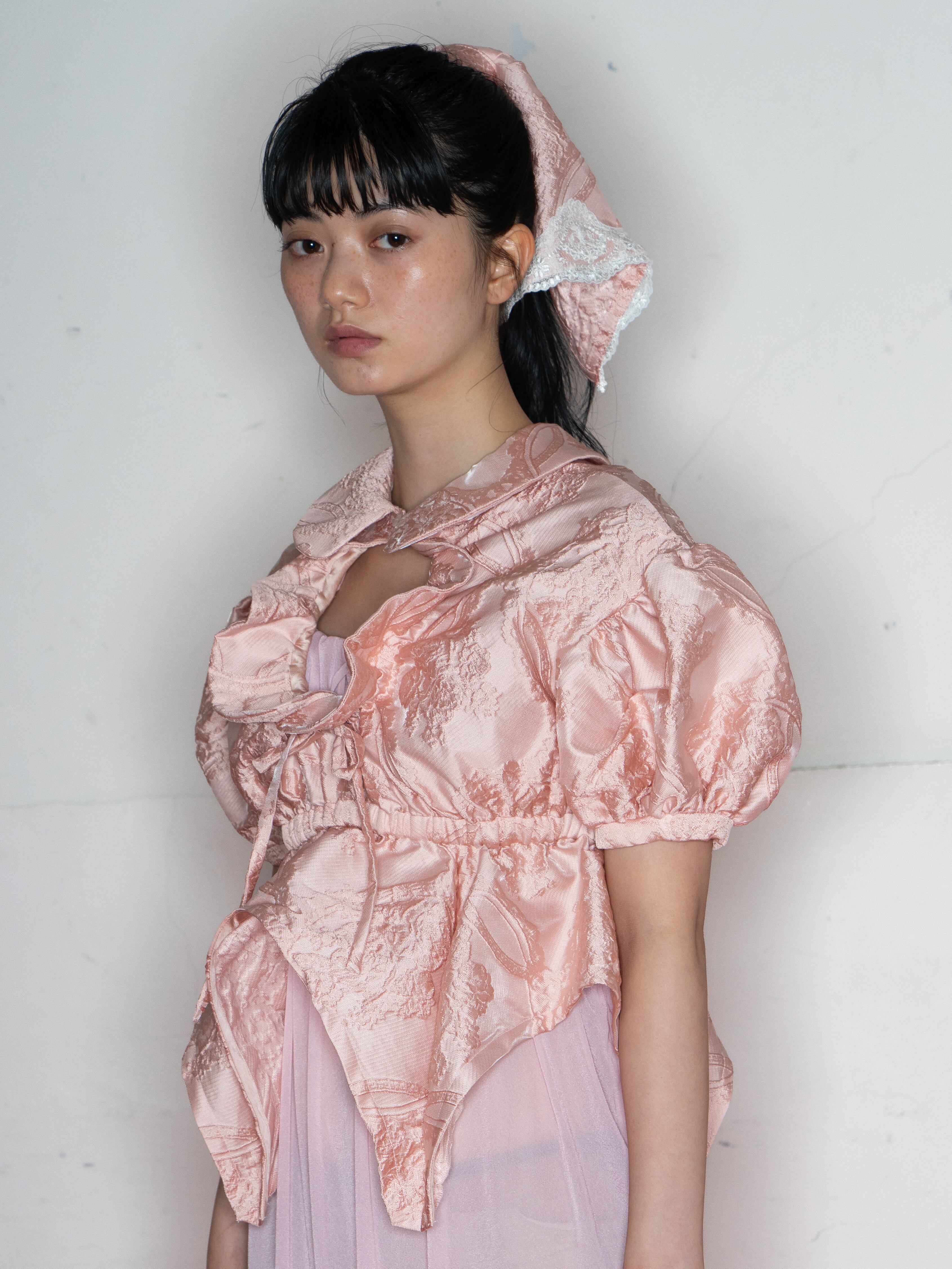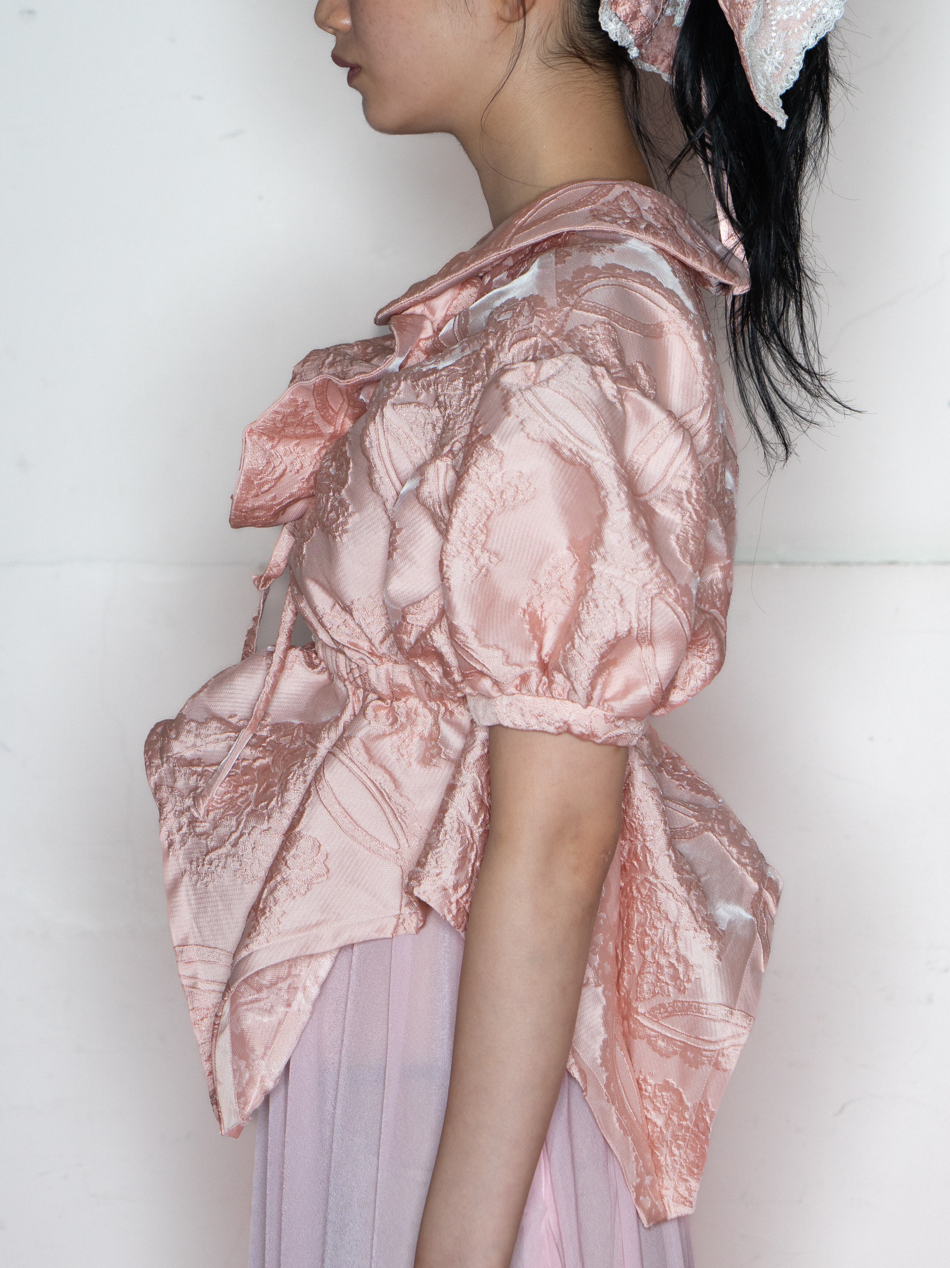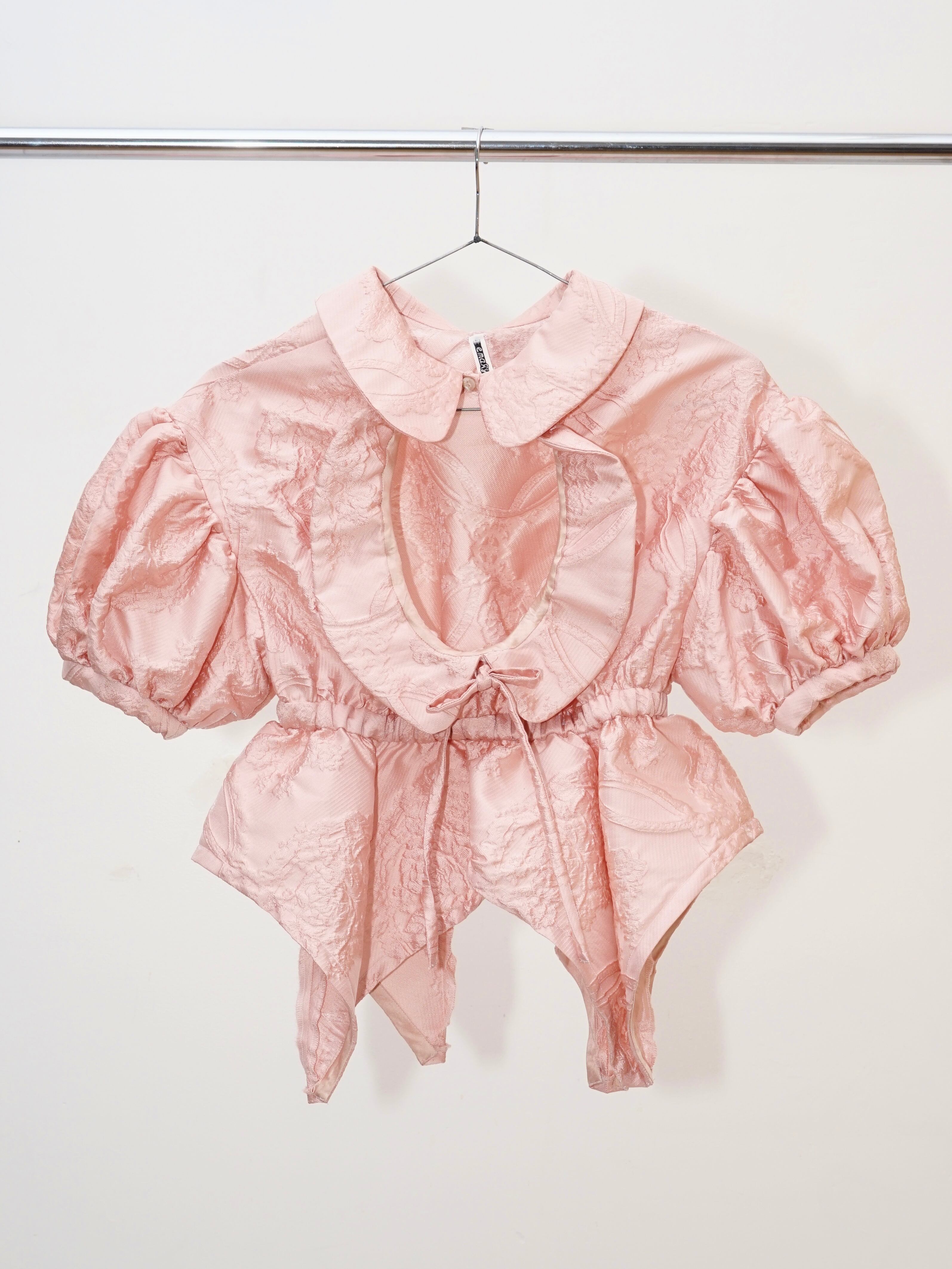 ジャガード素材でハリ感があり、お腹のshapeがcuteなパフブラウス。