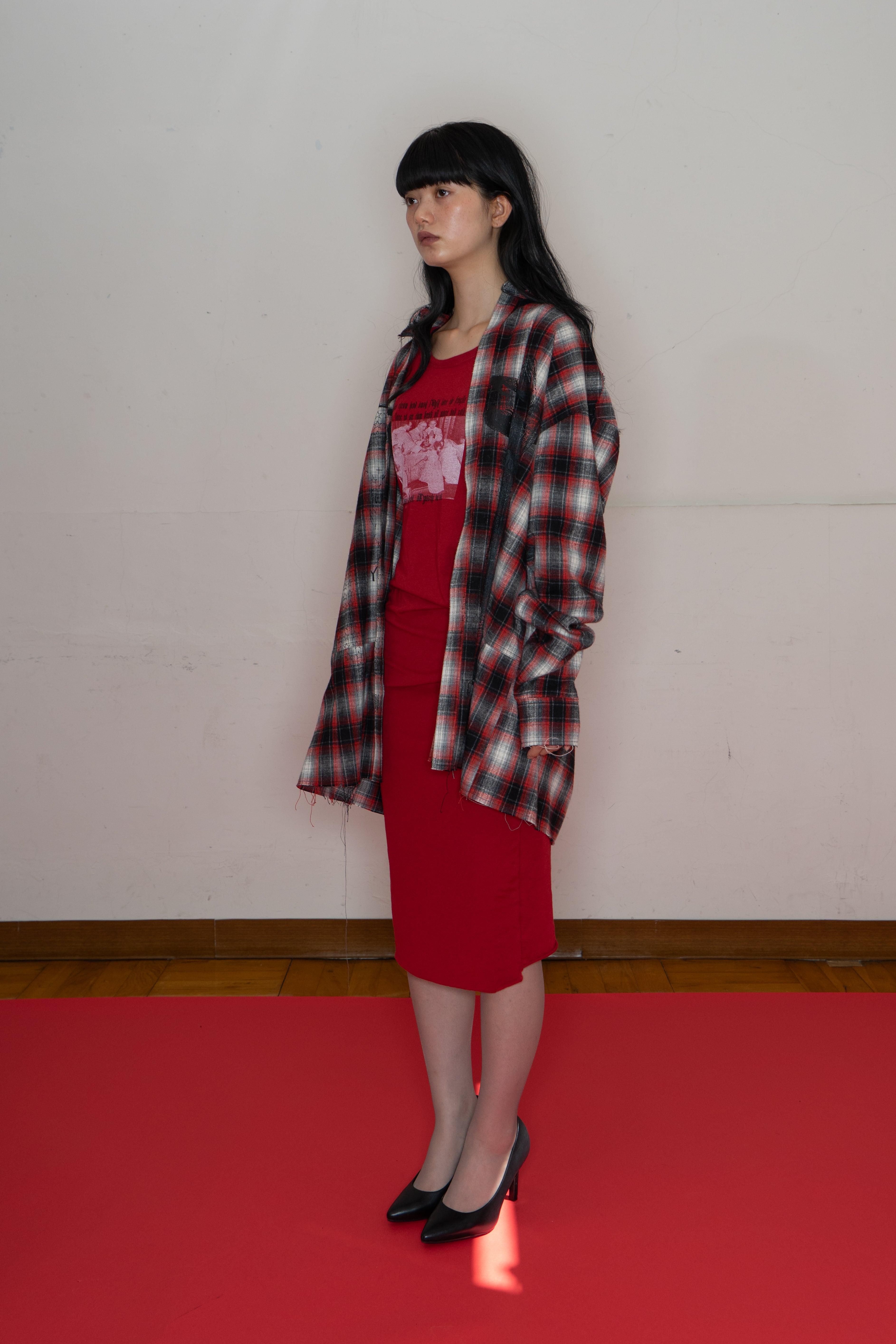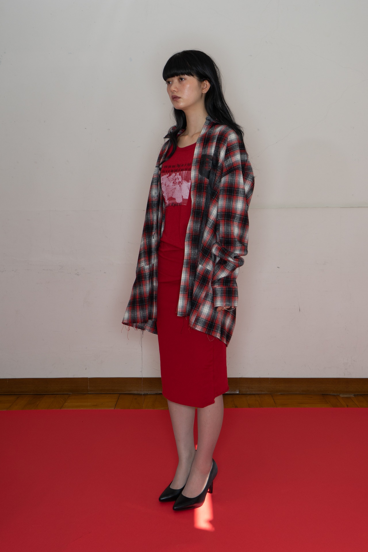 起毛加工がされたチェック生地を使用したネルシャツ。フロントのみプリーツが入っており、ユニセックスで着用可能です。裾のほつれや繊細なディティールもポイント。