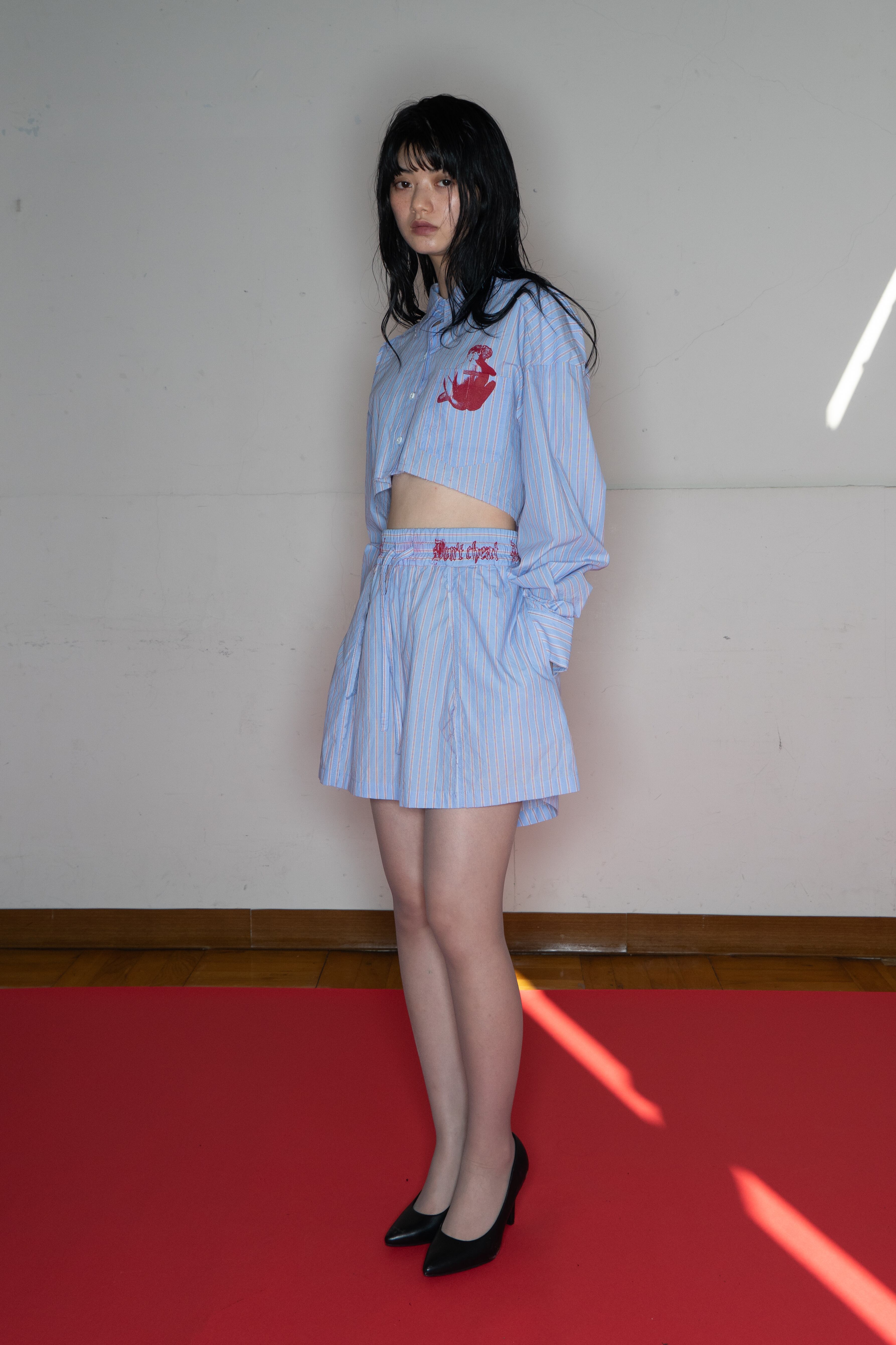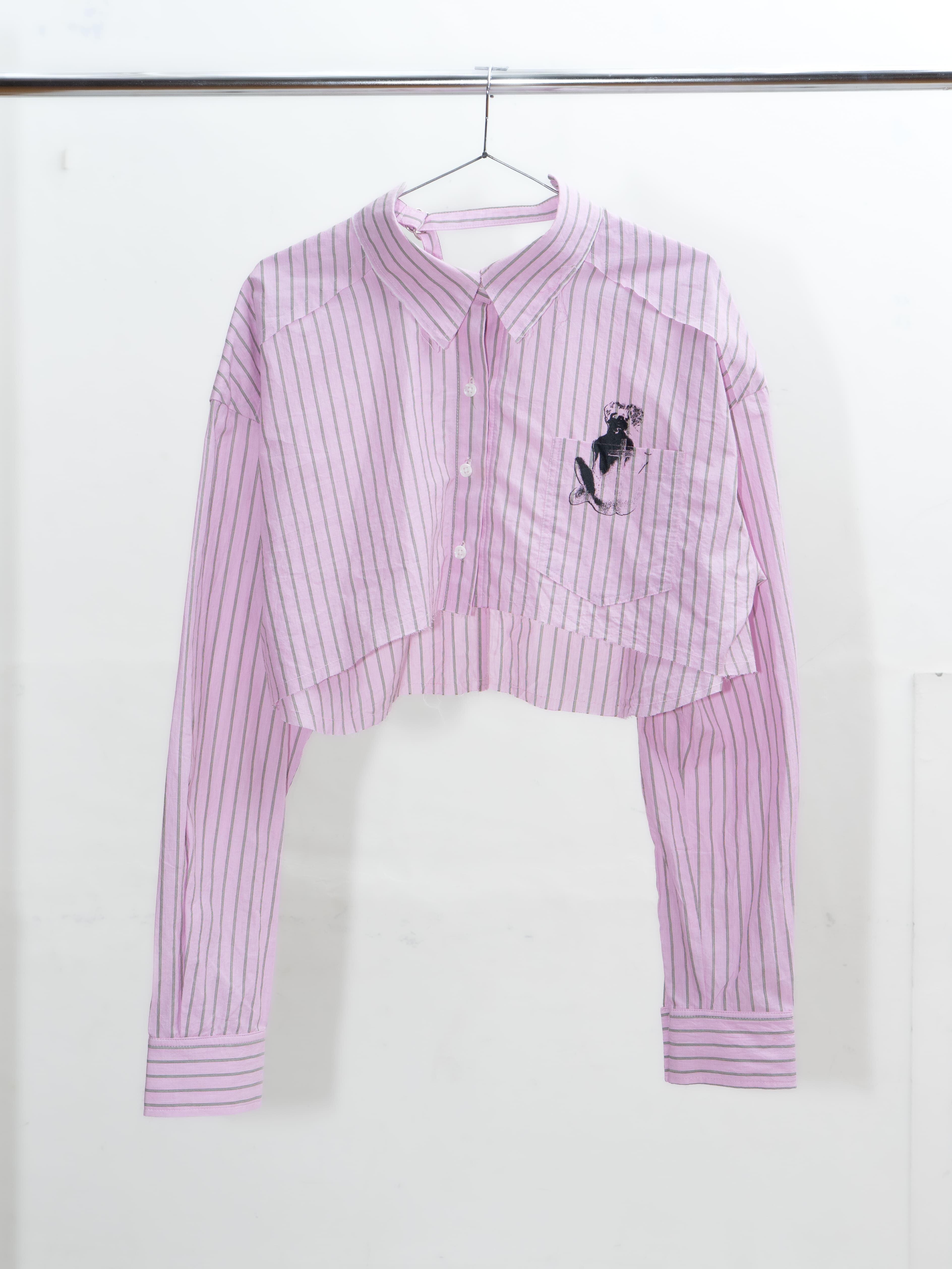 26SSのメイングラフィックがプリントされたショート丈ストライプシャツ。
