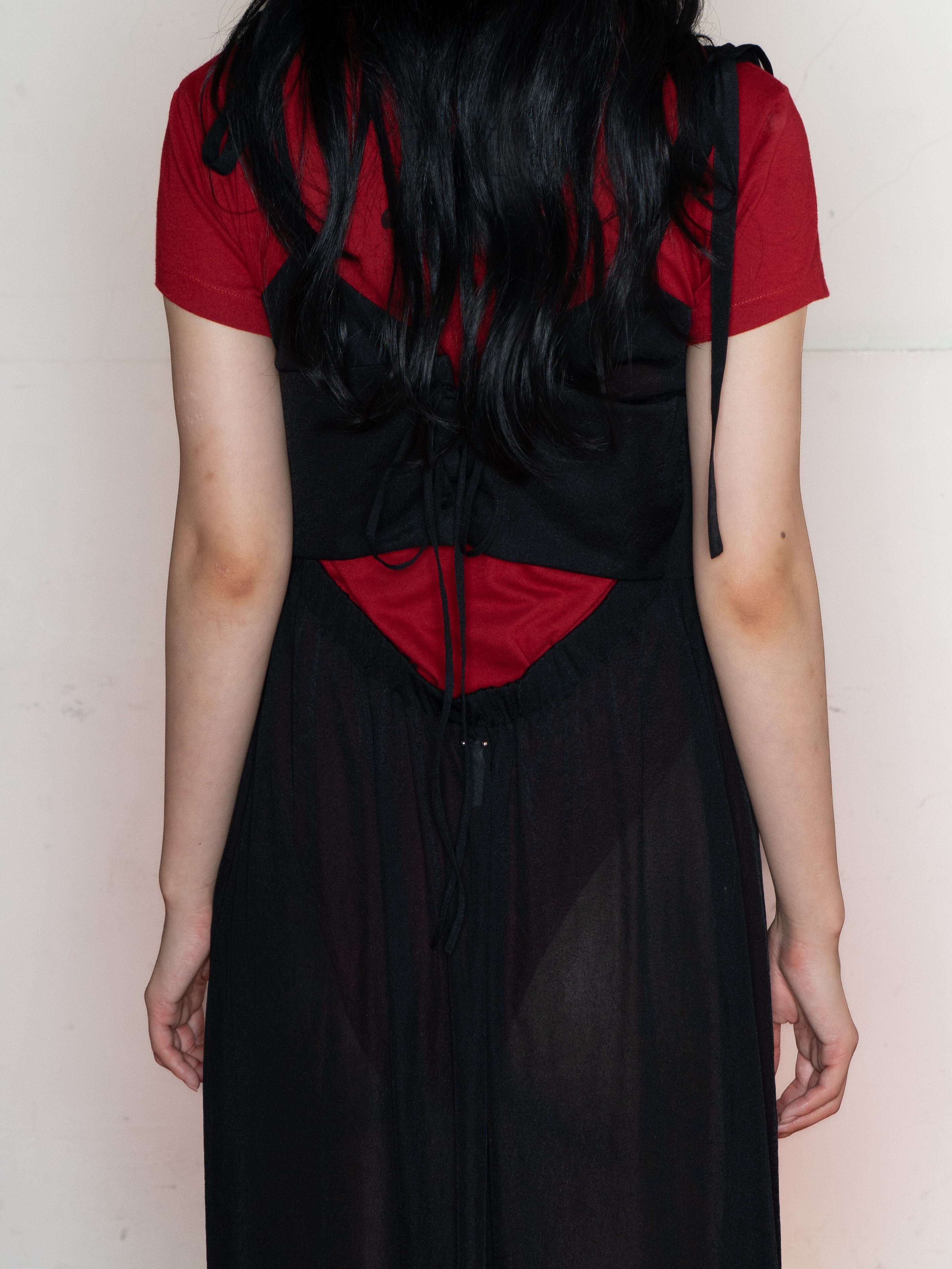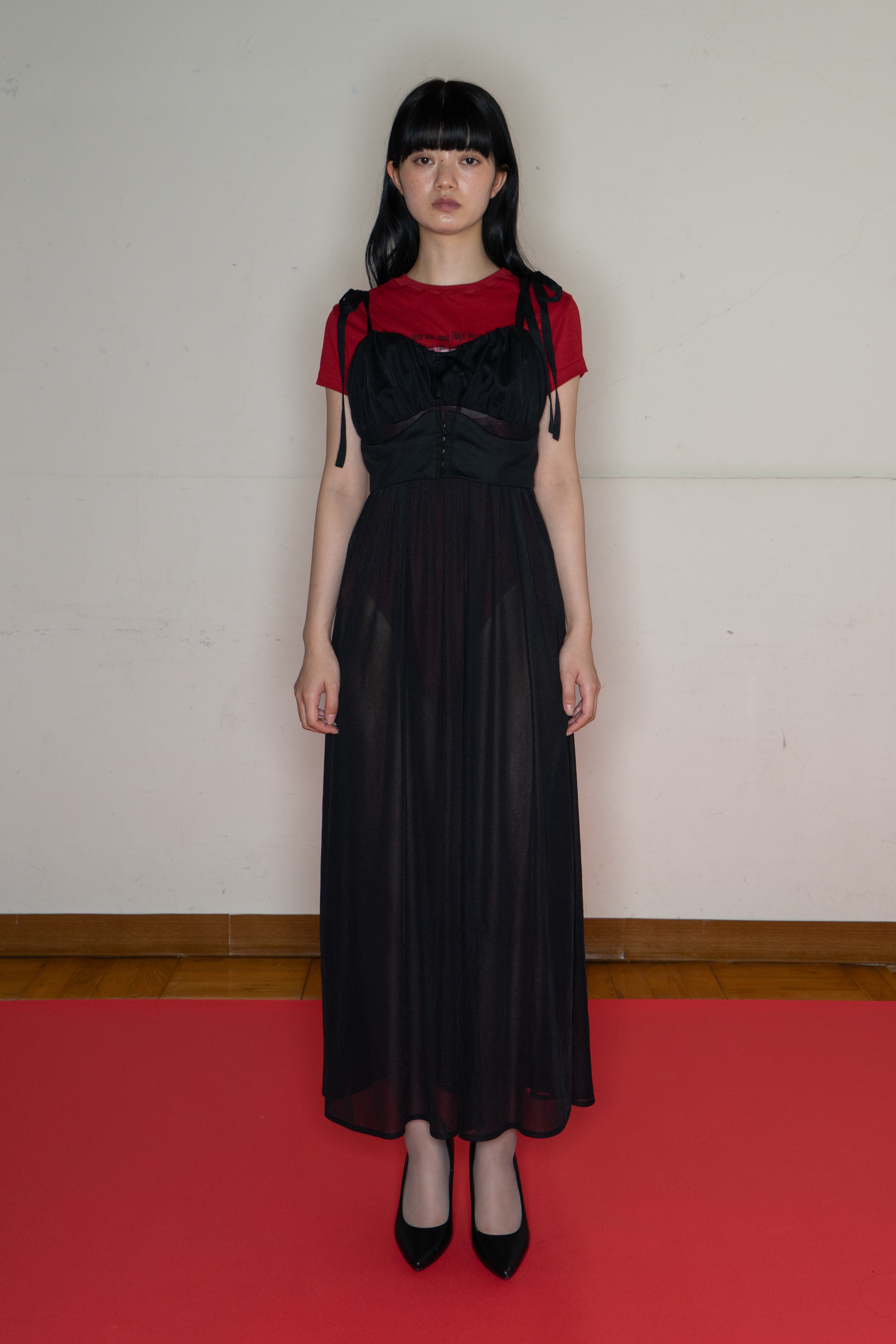 シアー素材が軽やかなコルセット付きワンピース。細かいディティールにこだわった1着です。
