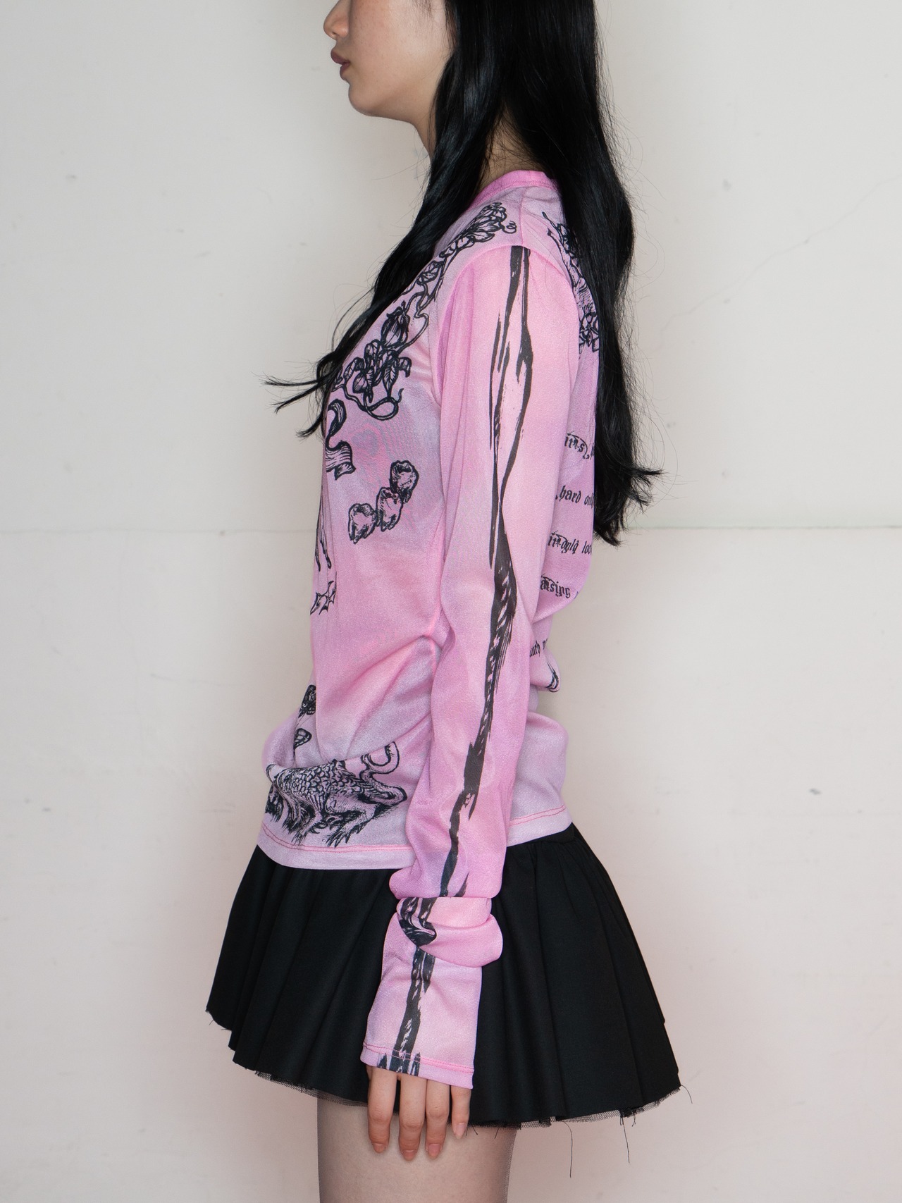 emary定番のtopsは袖が長めでサイズ展開もS,M,Lとユニセックスに着用可能。