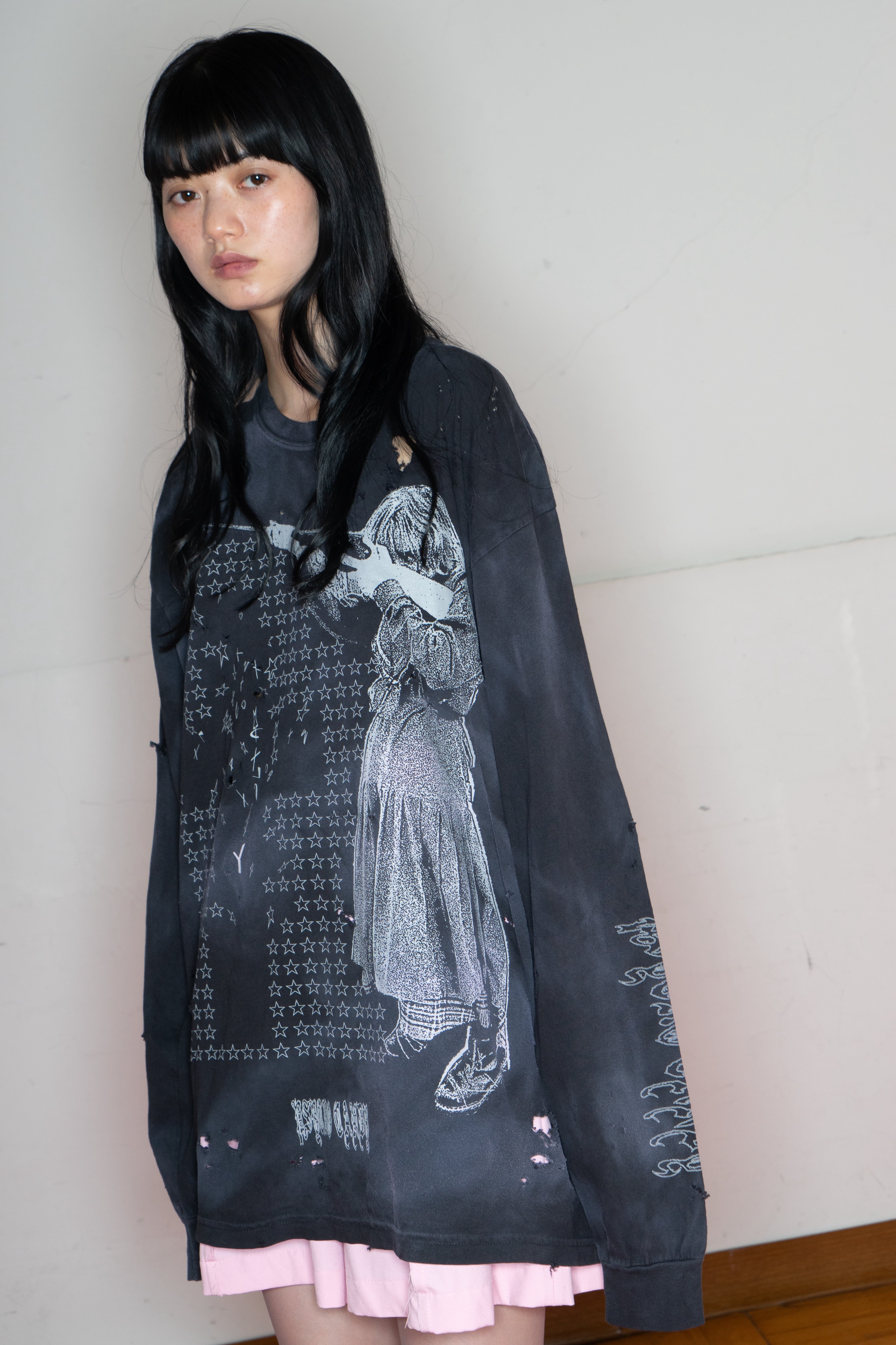 emaryの定番Graphic long Tシャツ。コレクションしているファンも多く、セレクトショップでもすぐに完売してしまうアイテム。