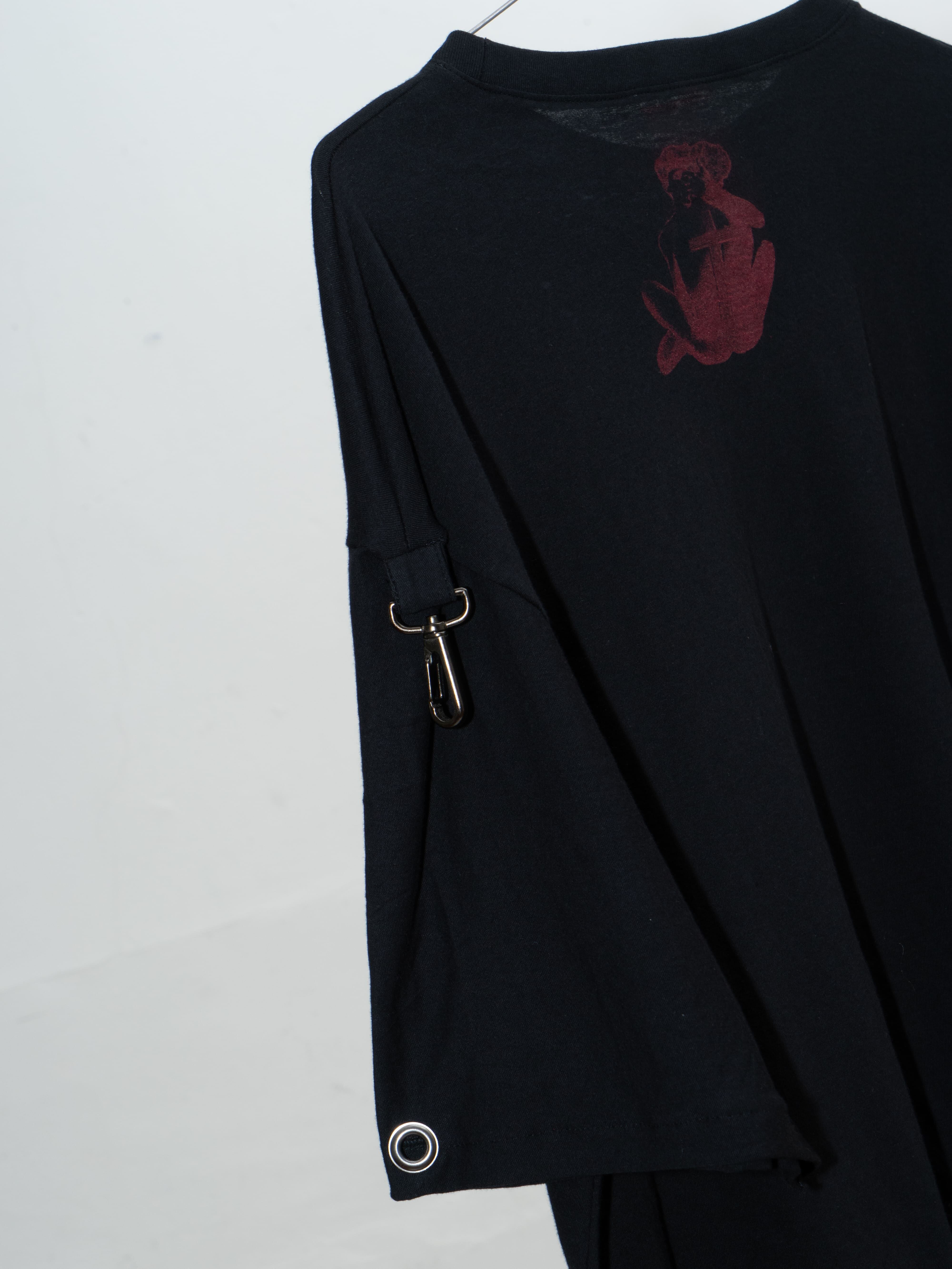26SS CULT series graphic big Tシャツ。肩についたナスカンでスタイリングを変化させれるアイテム。 着心地のよい薄手のCotton生地に、ユニセックスなサイズ感でラフに着用いただける、春夏におすすめのアイテムです。