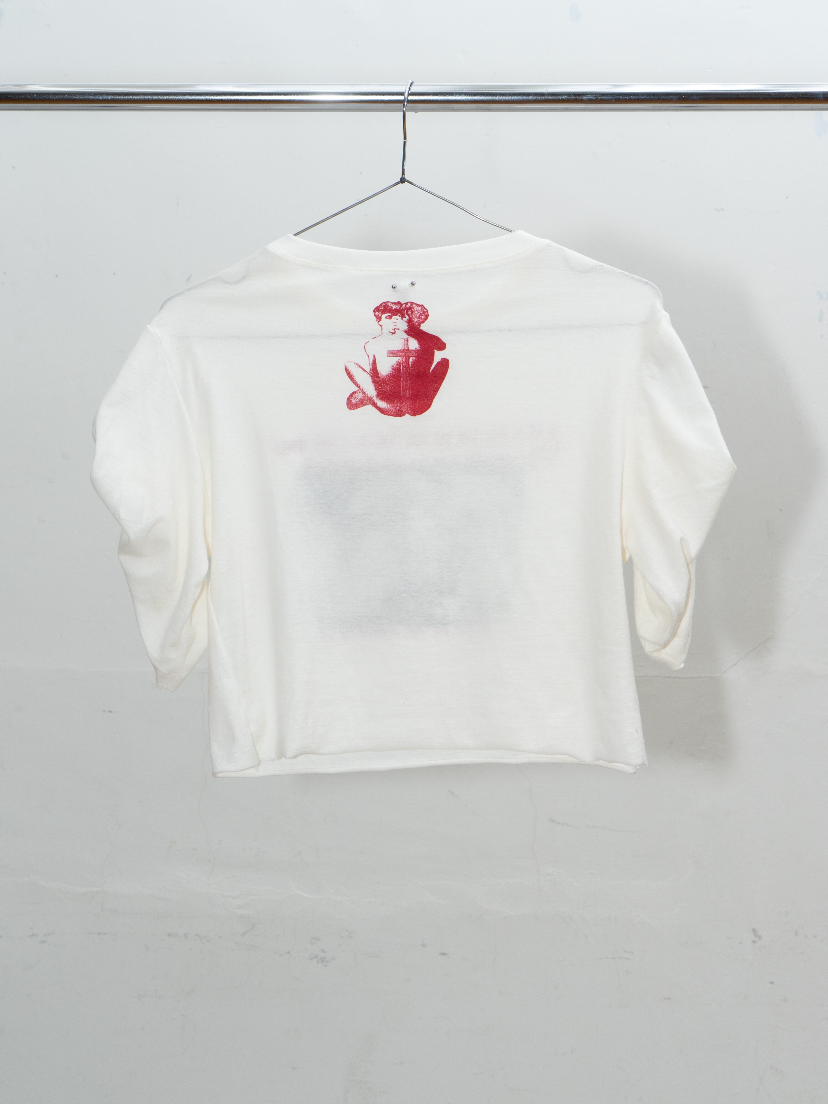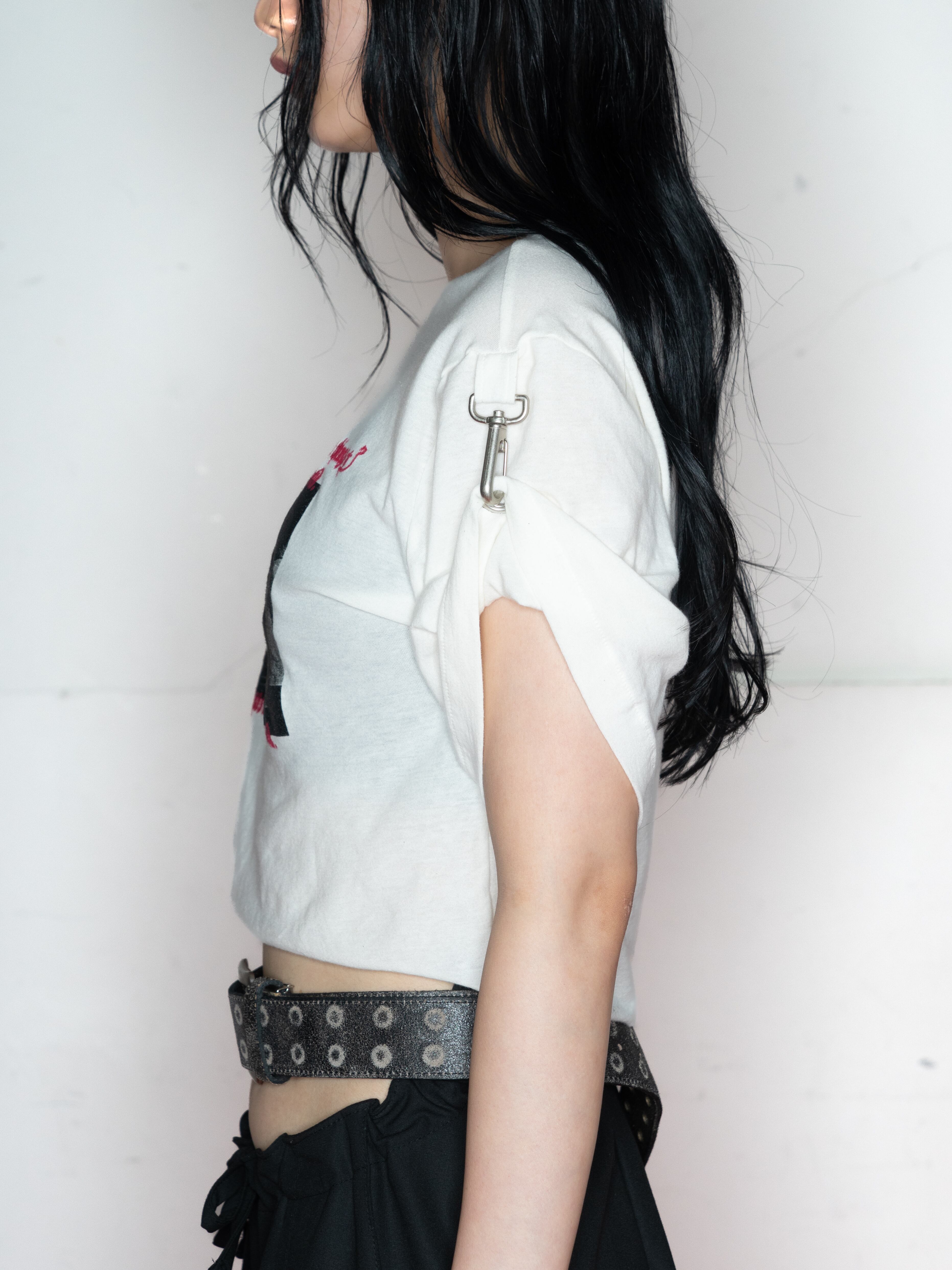 26SS CULT series graphic mini hang Tシャツ。肩についたナスカンでスタイリングを変化させれるアイテム。着心地のよい薄手のCotton生地に、タイトなサイズ感で春夏におすすめです。