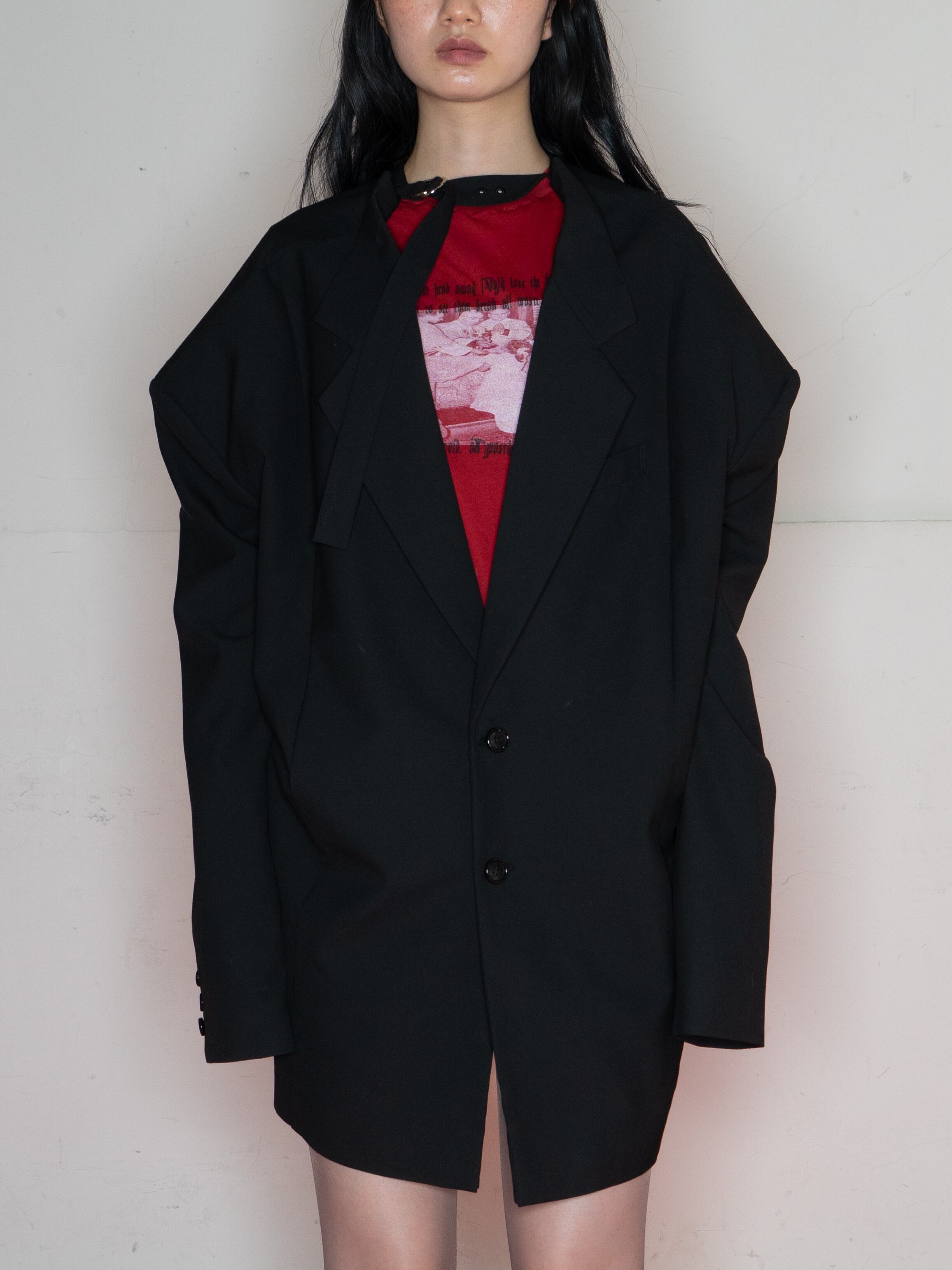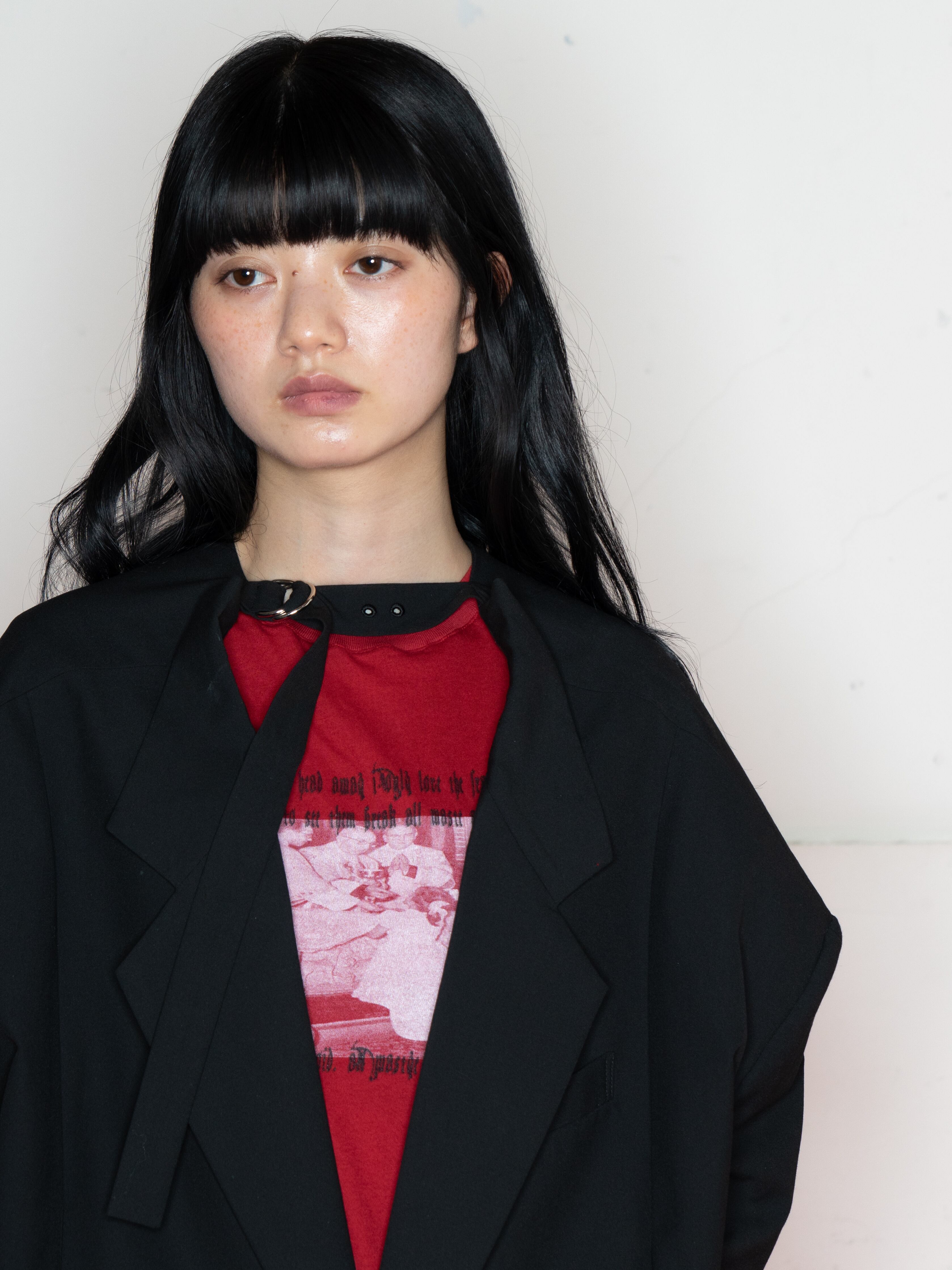 しなやかさのある上品な生地に、ドロップショルダー、emary定番のチョーカーディティールなどshapeにこだわった1着。