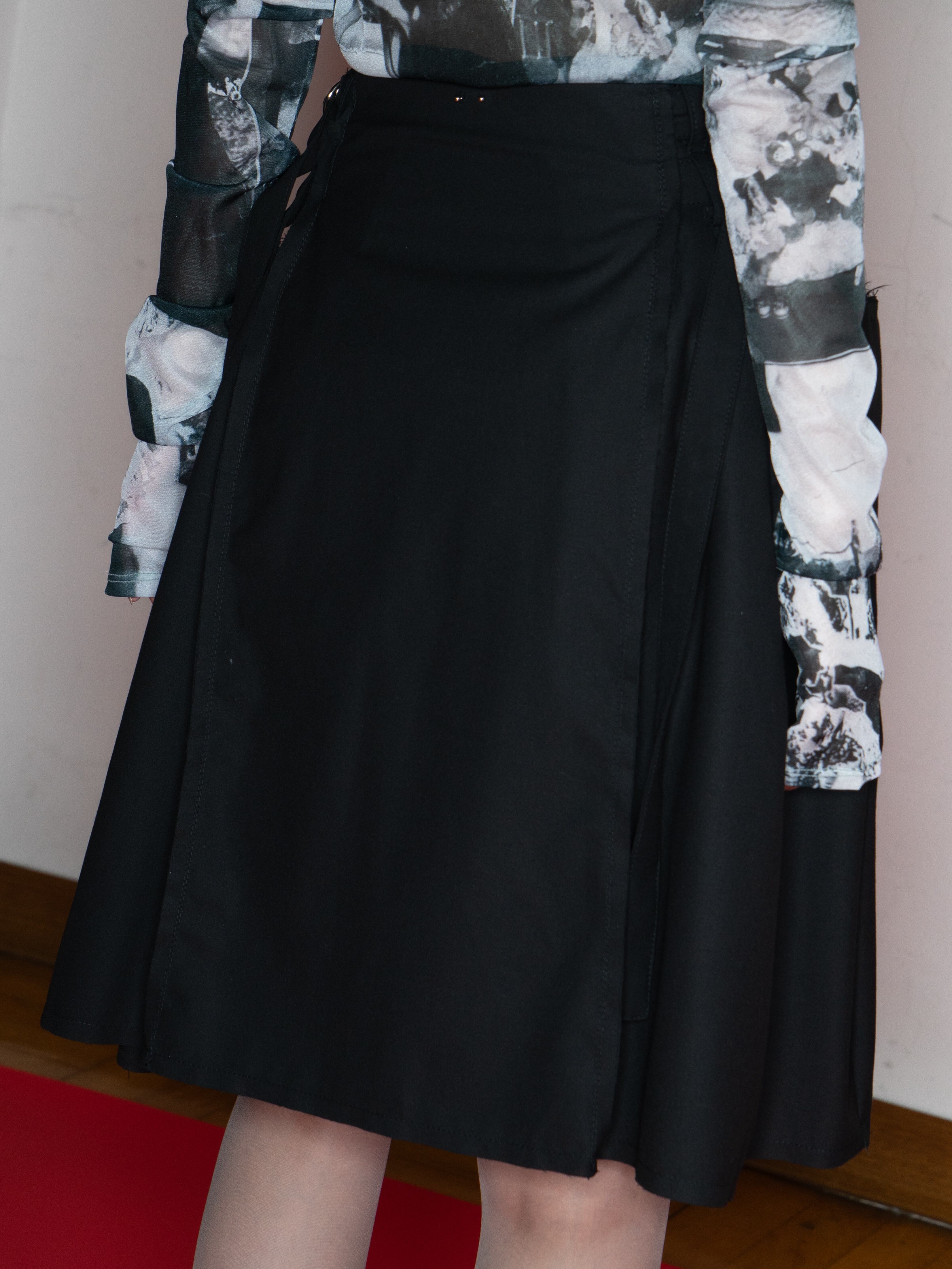 ウエストベルトでユニセックスにご着用いただける巻きスカート。