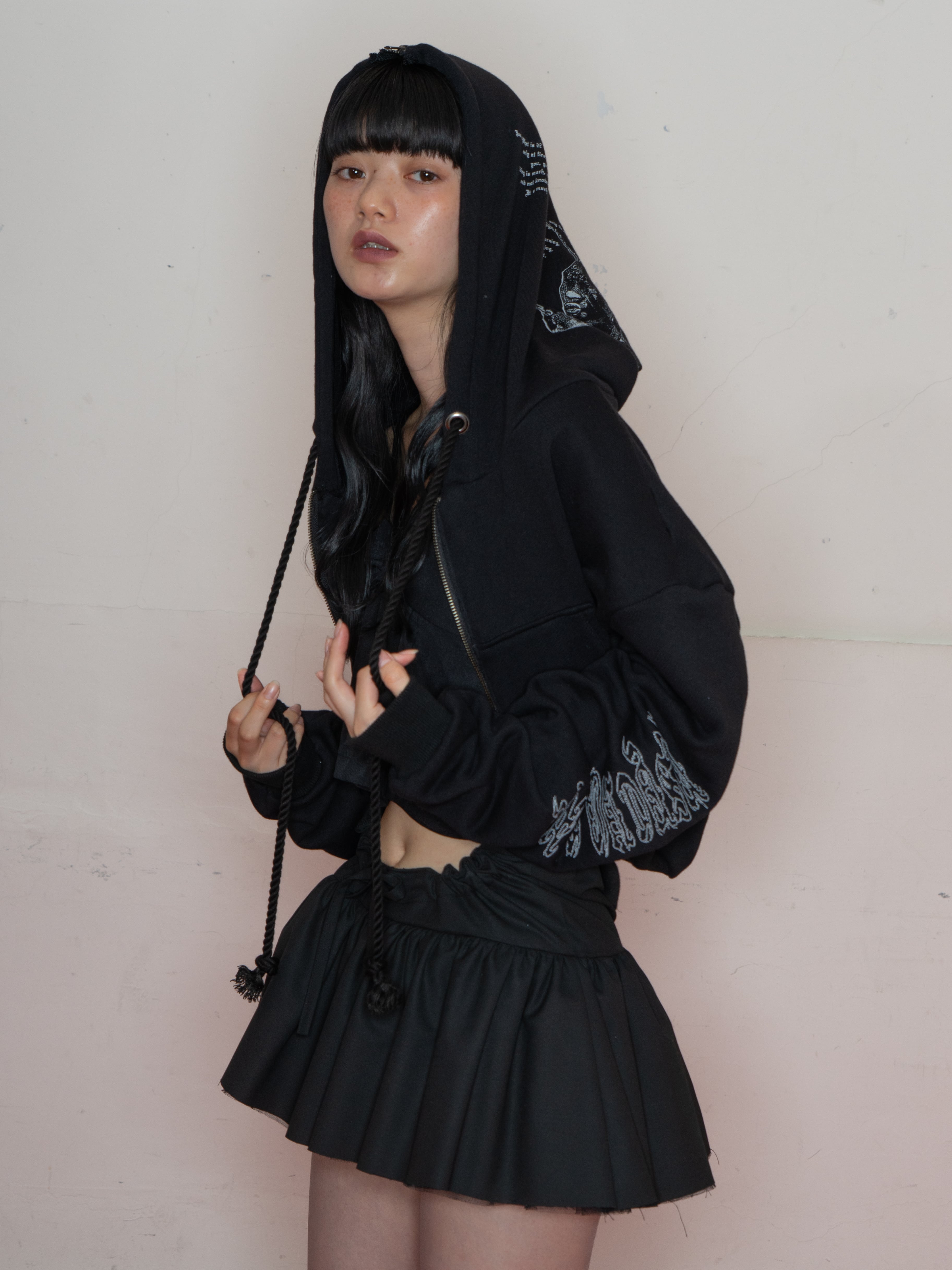 フードが大きく逆開ファスナーなのでスタイリングも楽しめます。