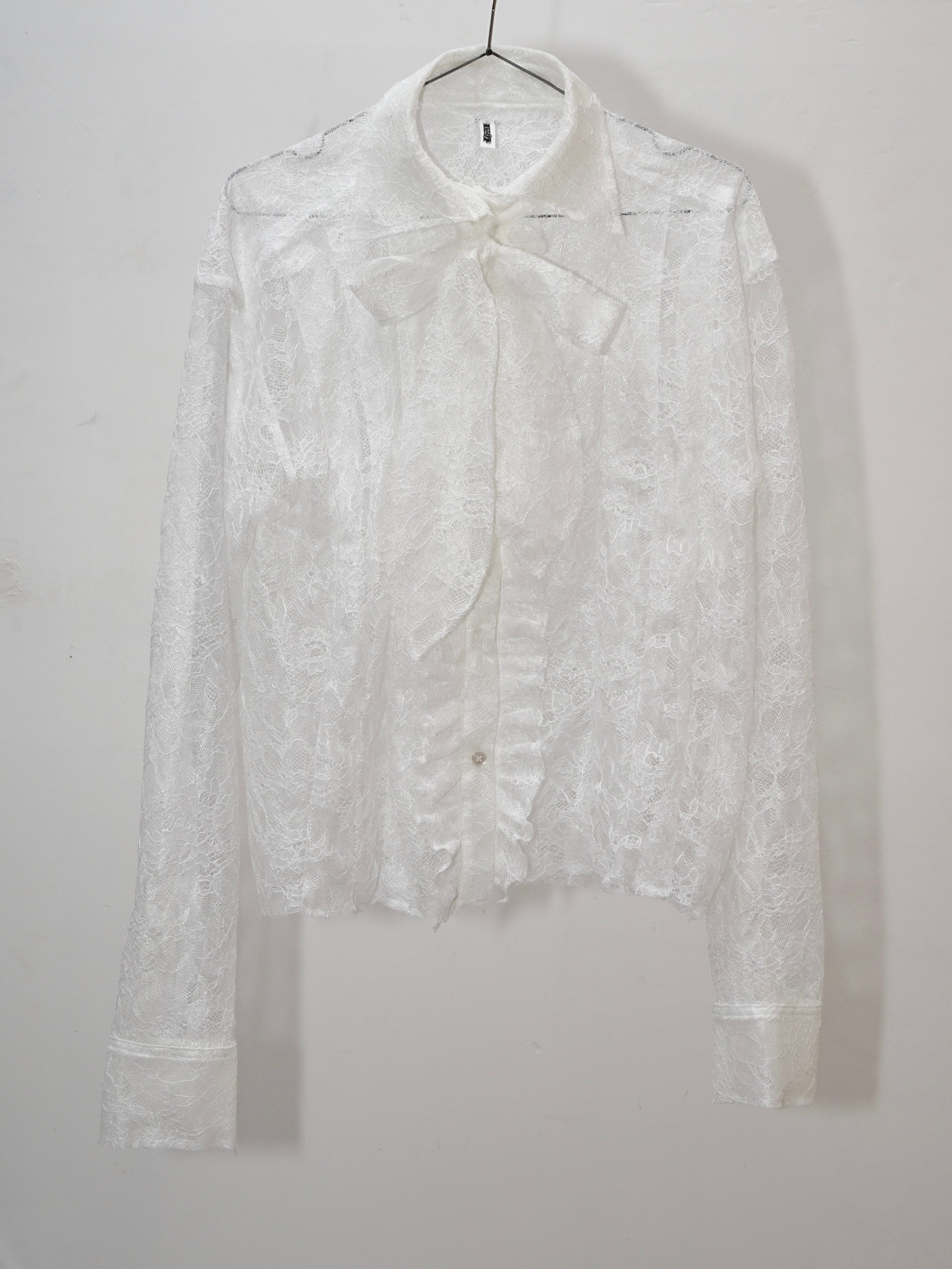 前たてのレースや、襟に沿ったリボンタイがポイント。デイリーでも着回しのしやすいアイテムです。