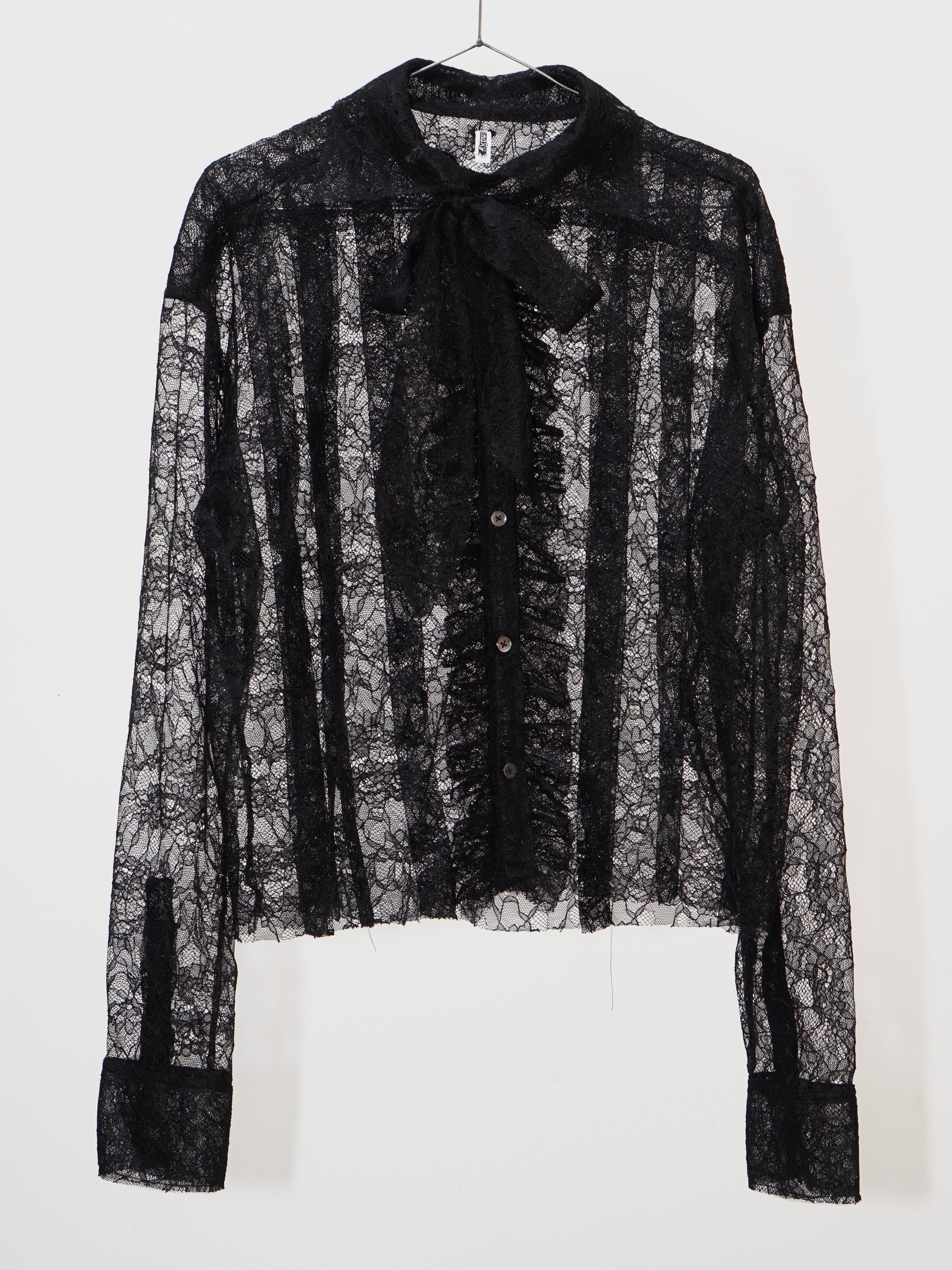 上品なレース素材のリボンタイblouse。