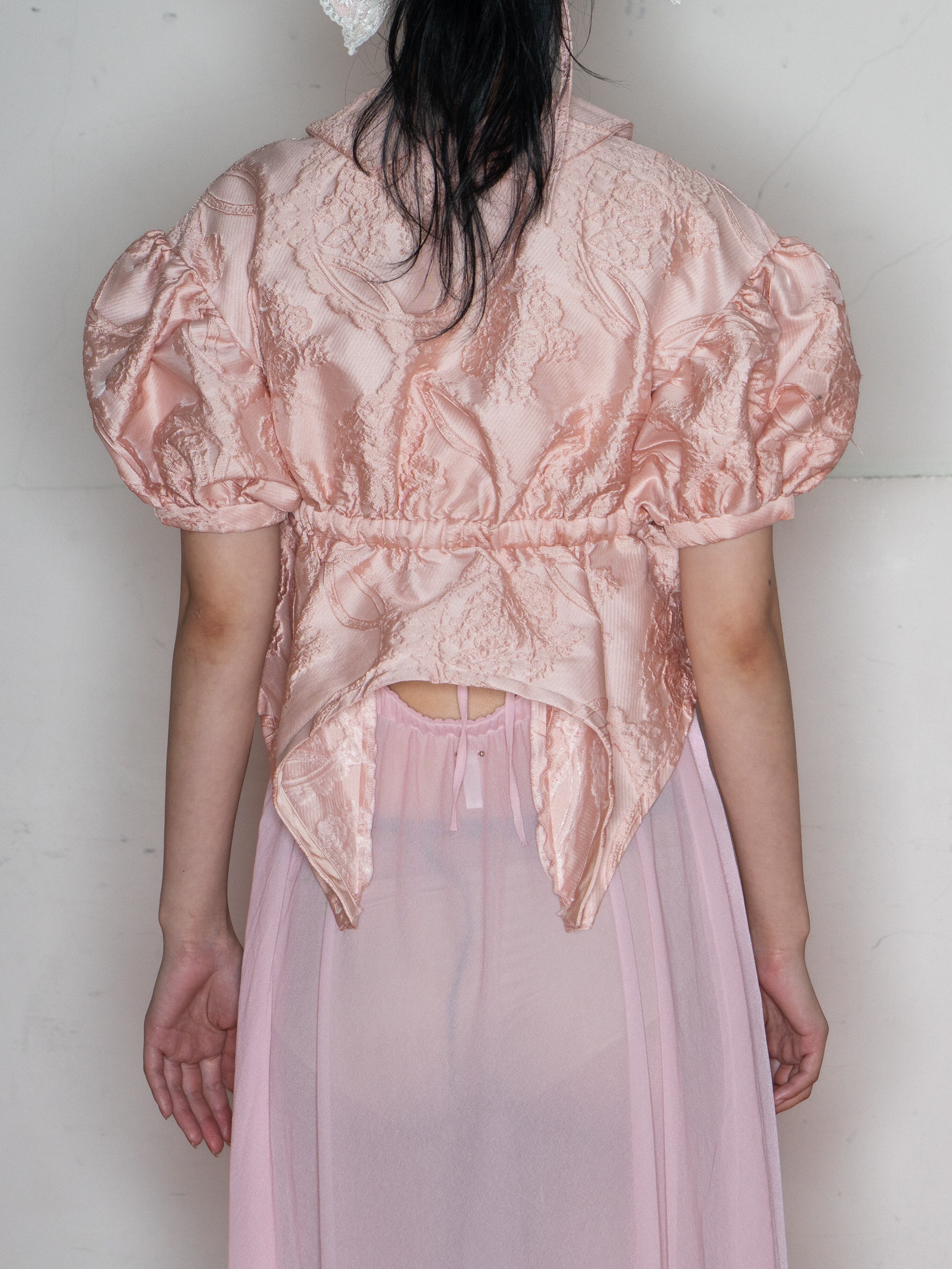ジャガード素材でハリ感があり、お腹のshapeがcuteなパフブラウス。