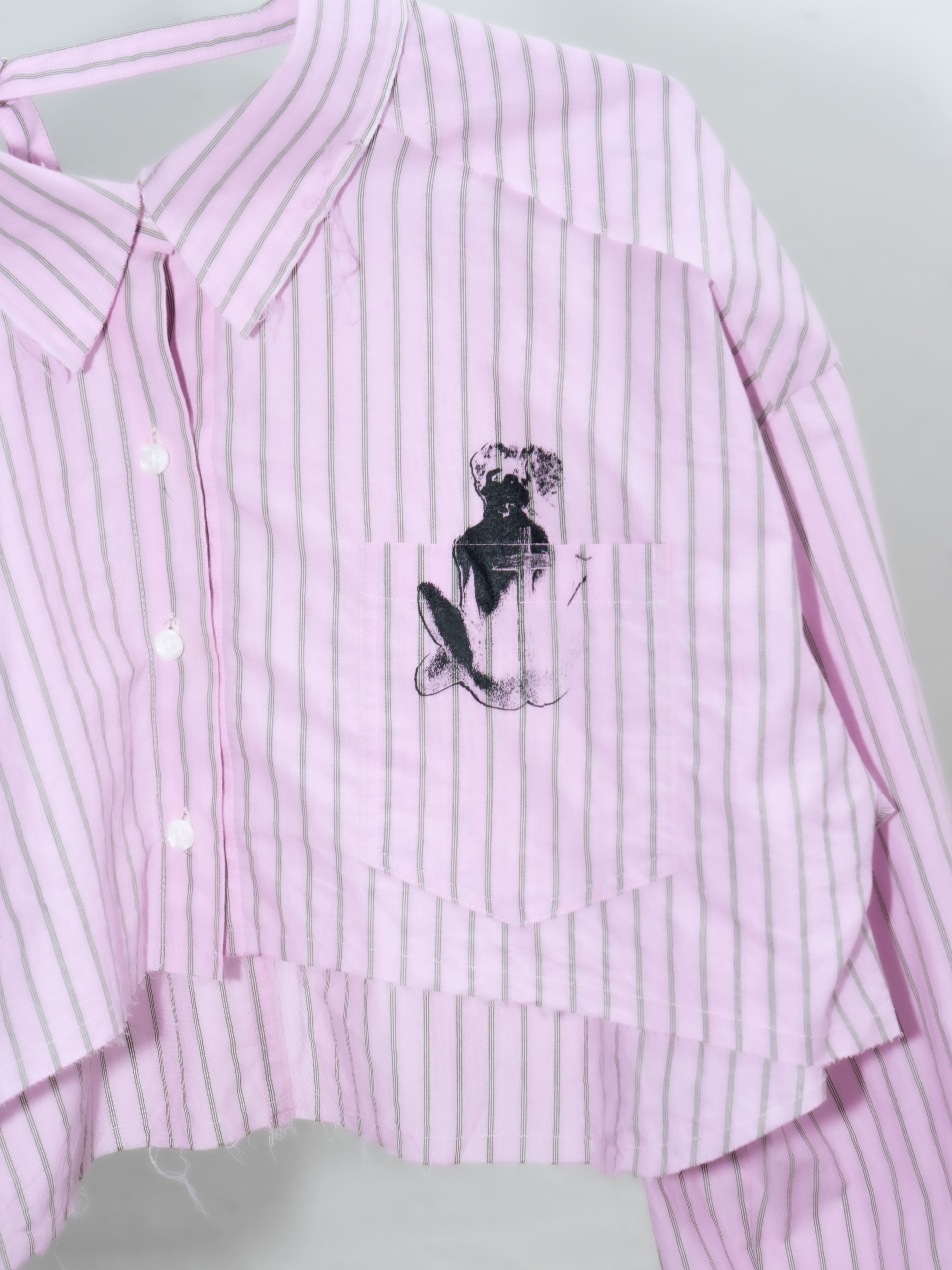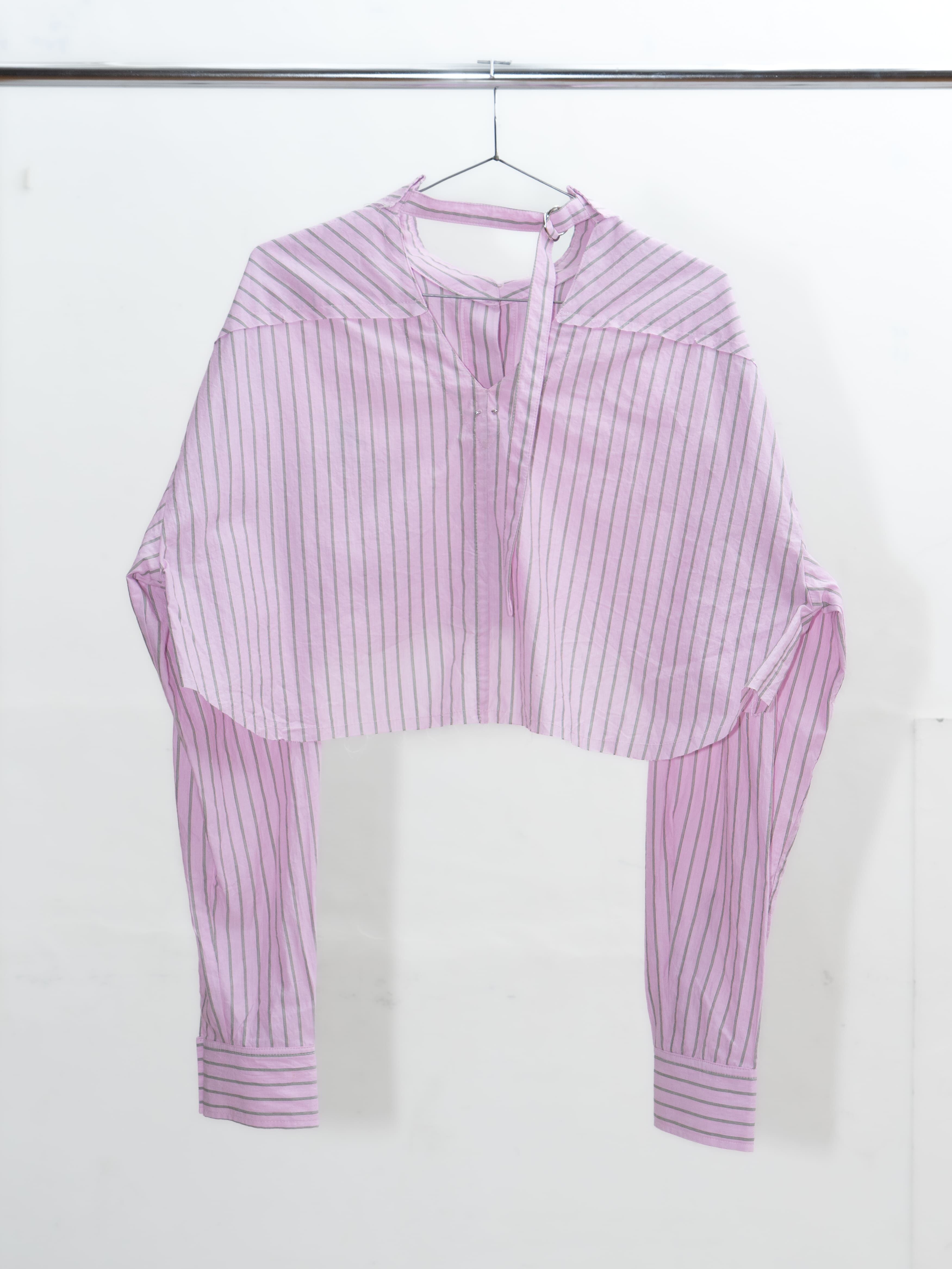 26SSのメイングラフィックがプリントされたショート丈ストライプシャツ。