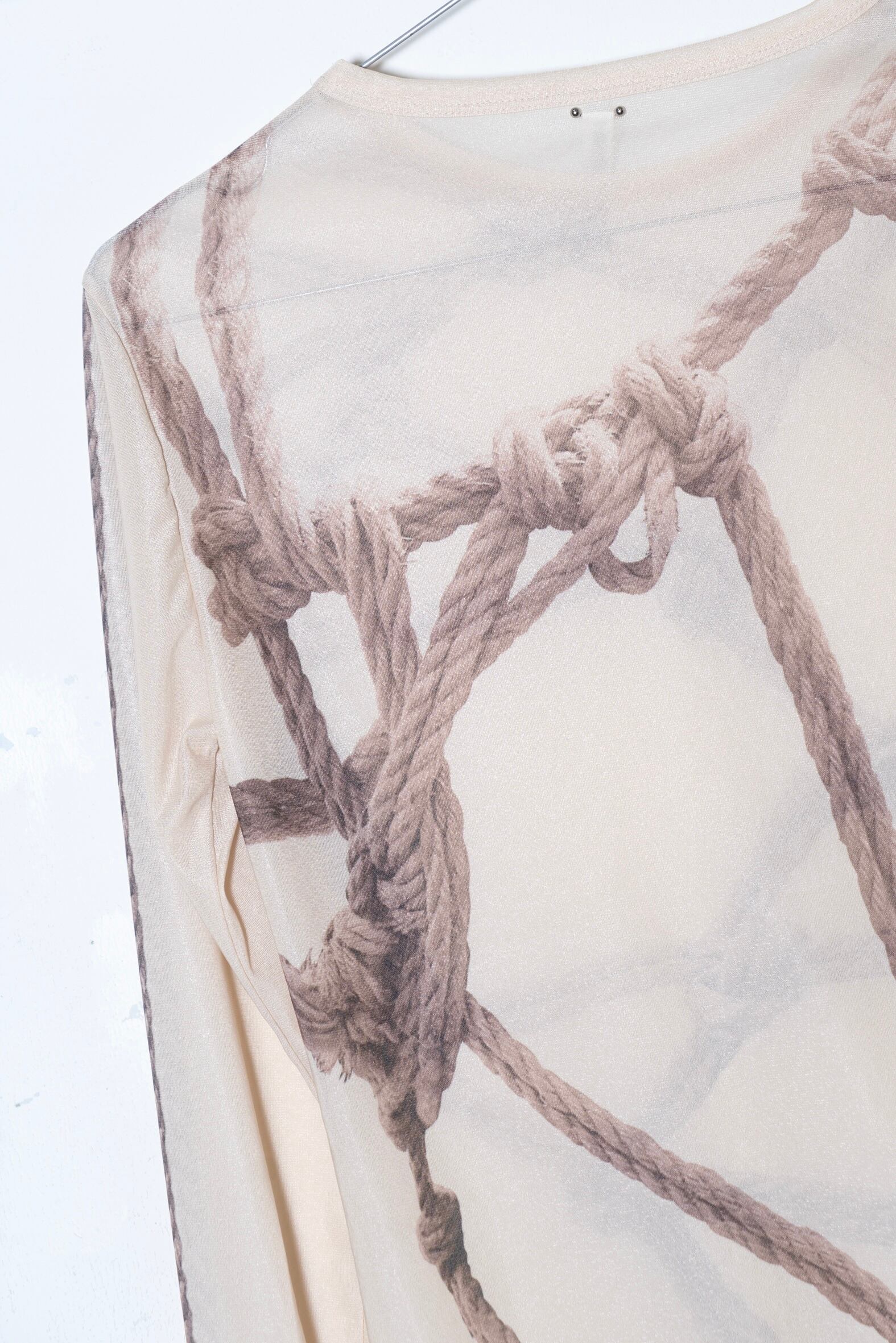 実際のSHIBARIのデザインをトロンプルイユのようにプリントに落とし込んだSecound skin tops。