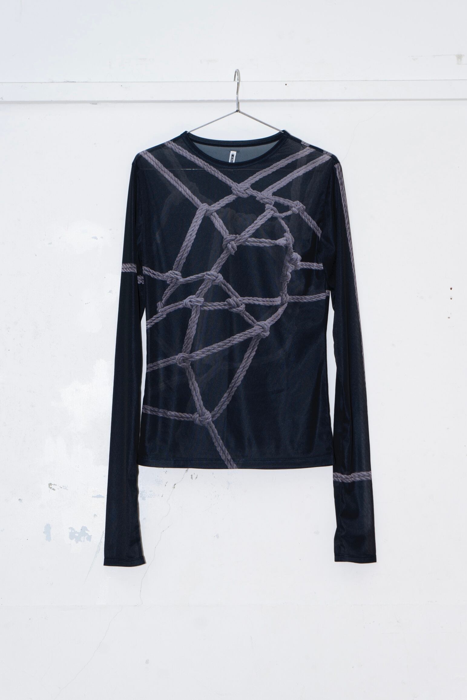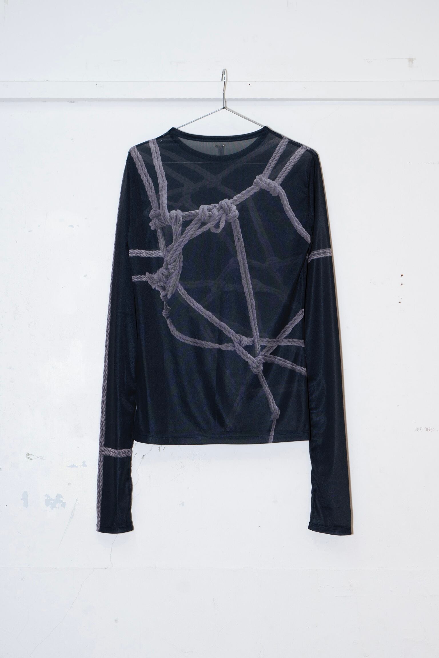 実際のSHIBARIのデザインをトロンプルイユのようにプリントに落とし込んだSecound skin tops。
