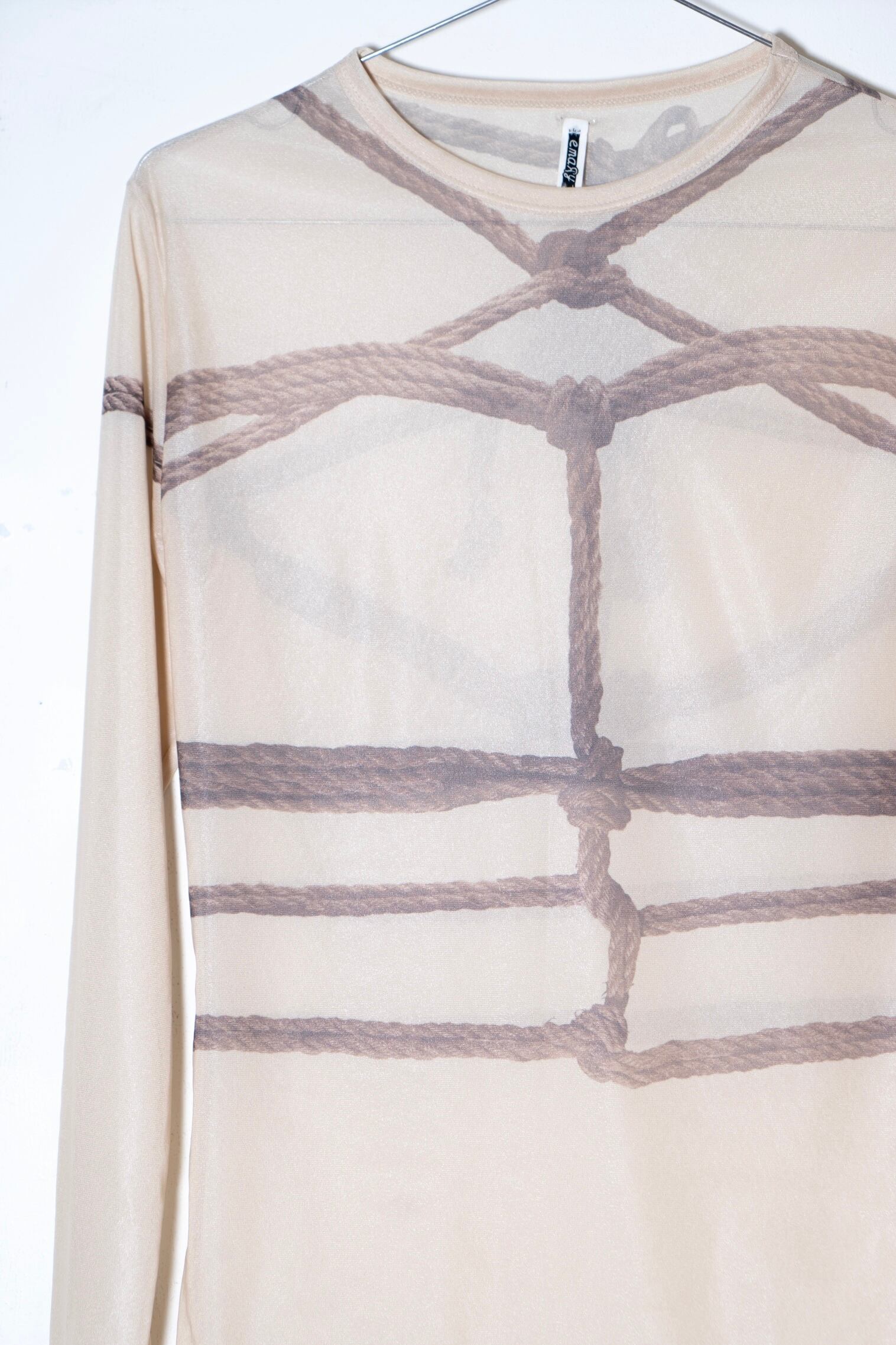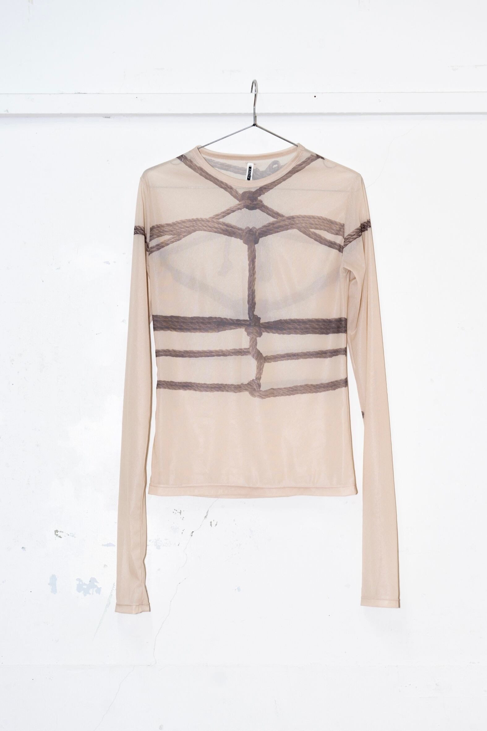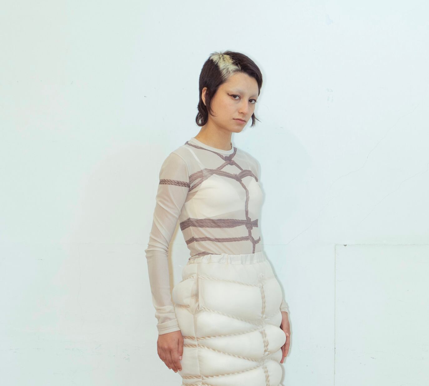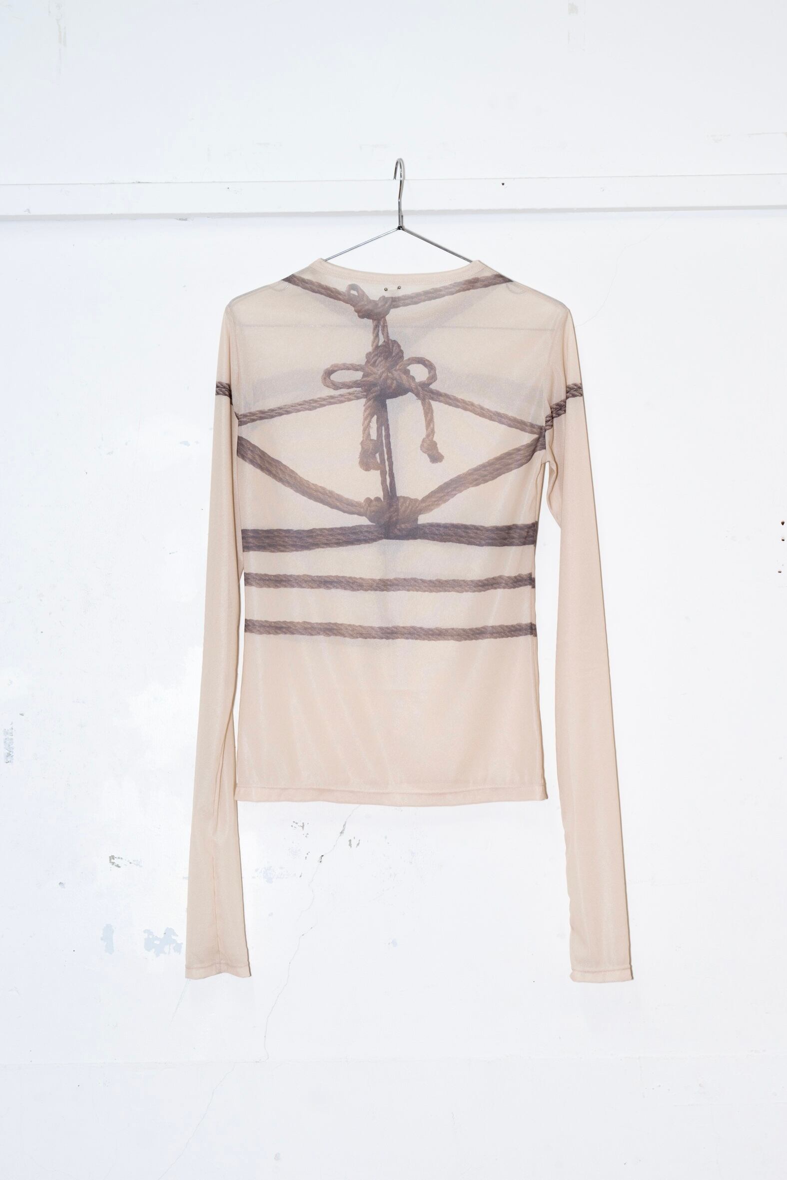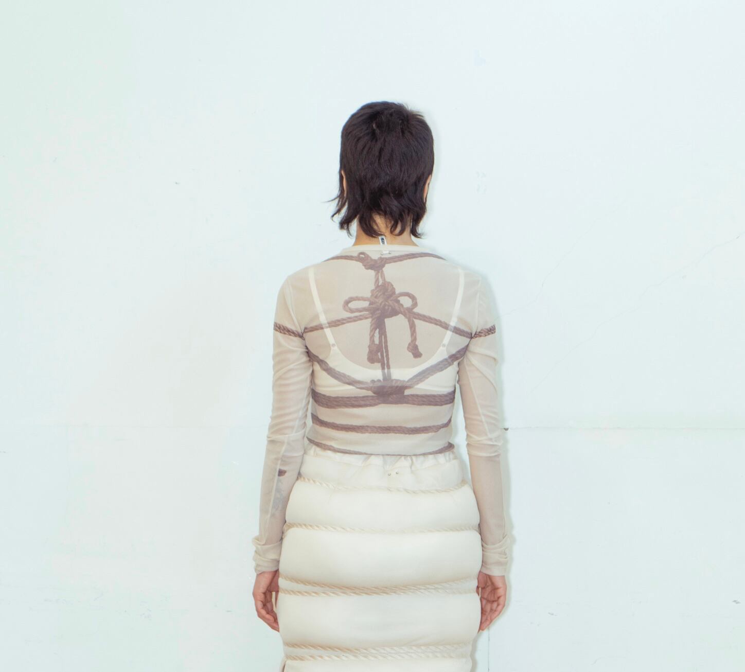 実際のSHIBARIのデザインをトロンプルイユのようにプリントに落とし込んだSecound skin tops。