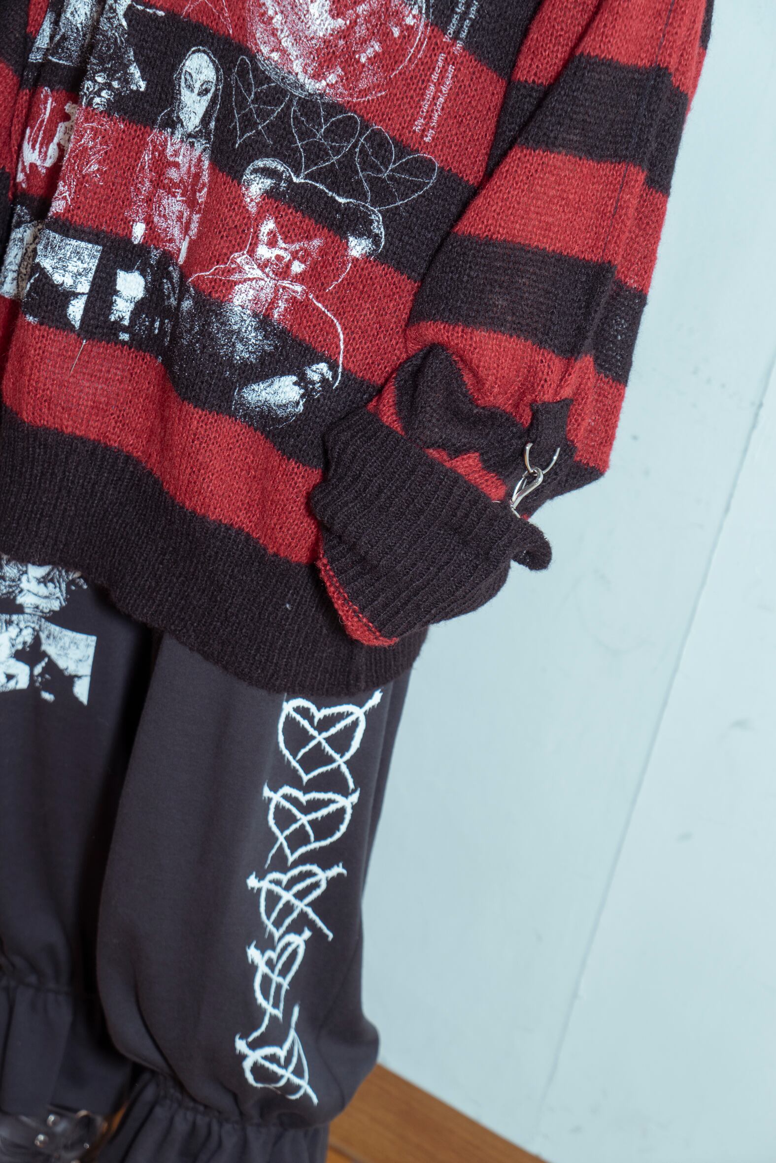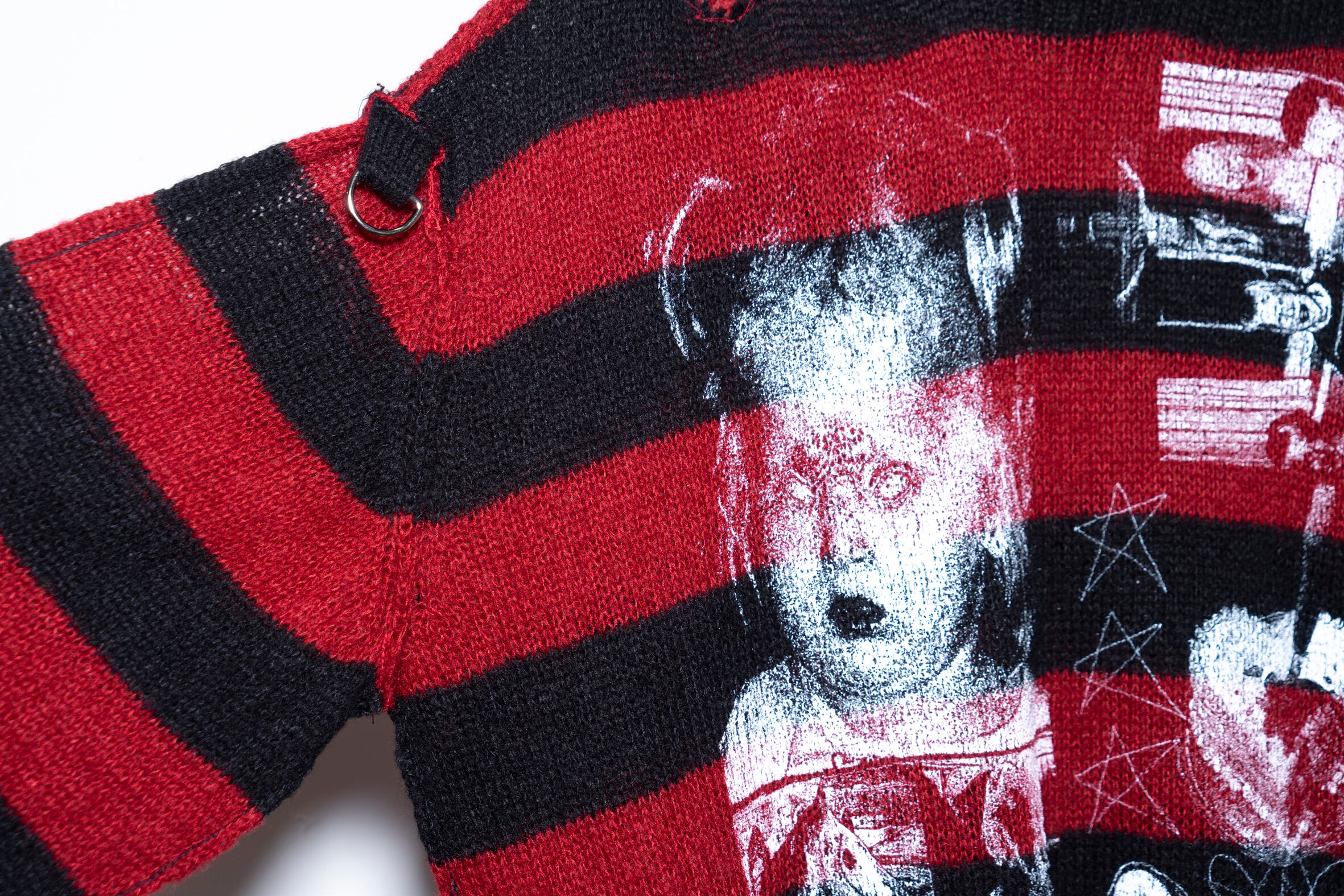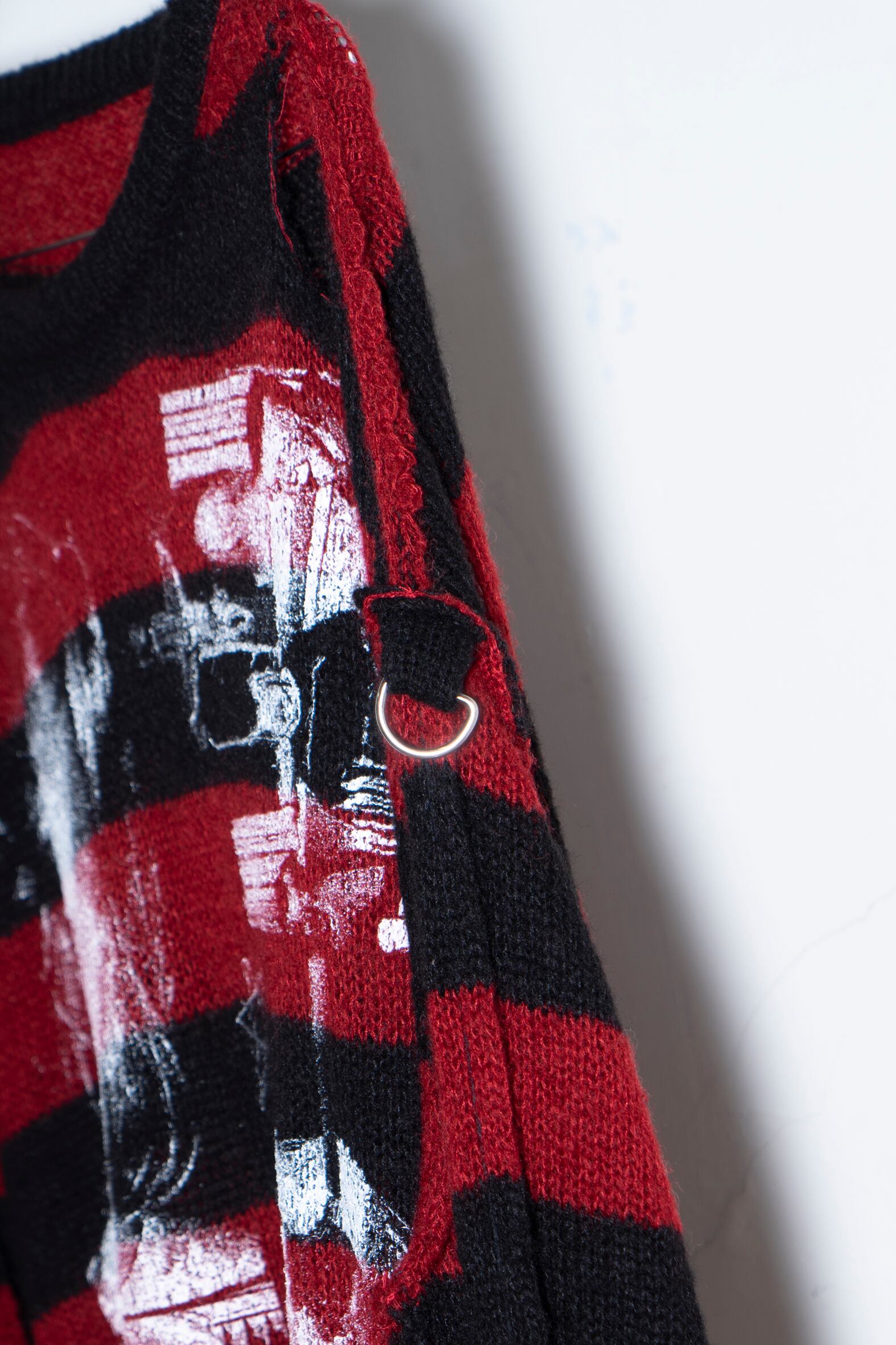 ボーダーニットに今期の象徴的なグラフィックがプリントされた1着。