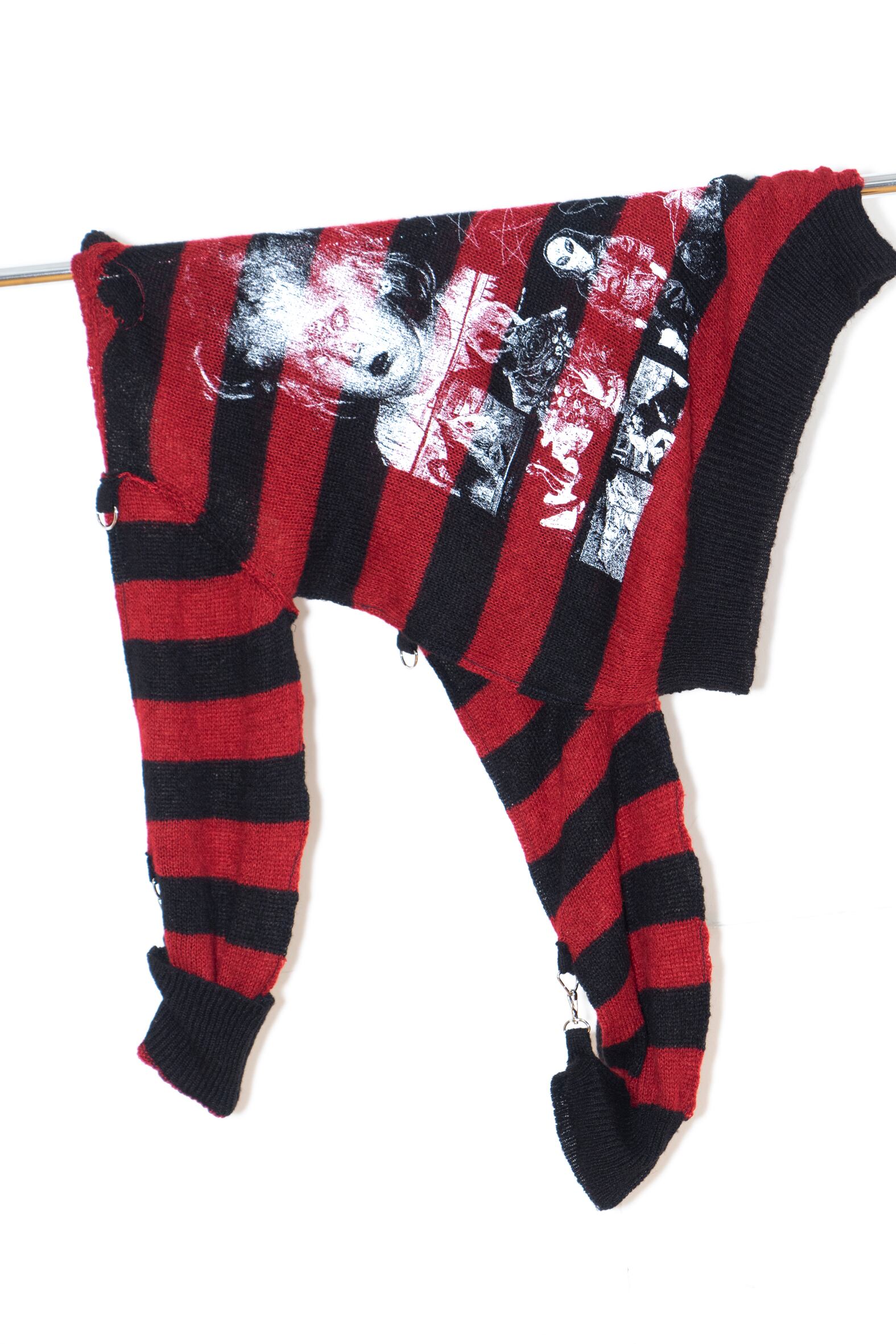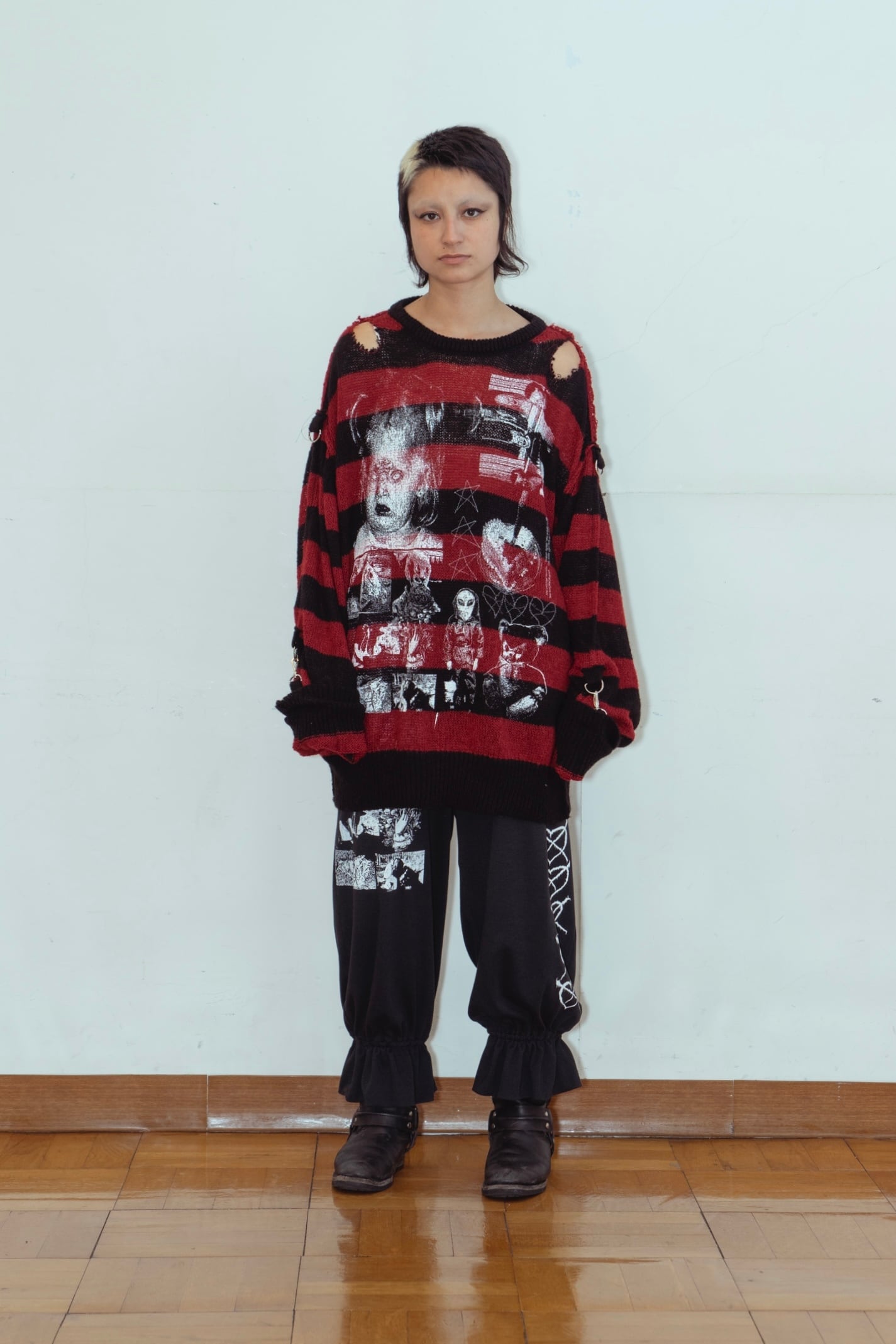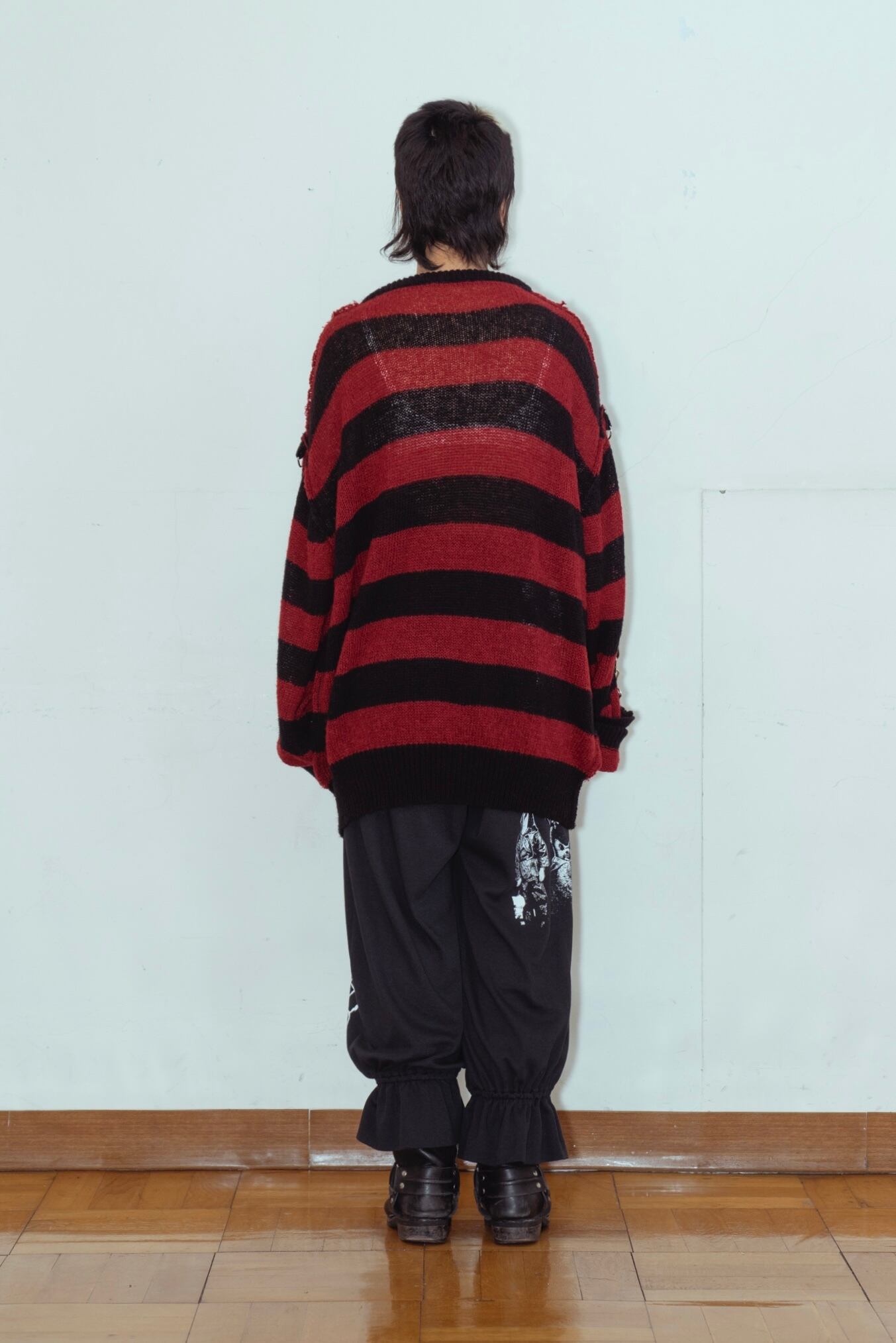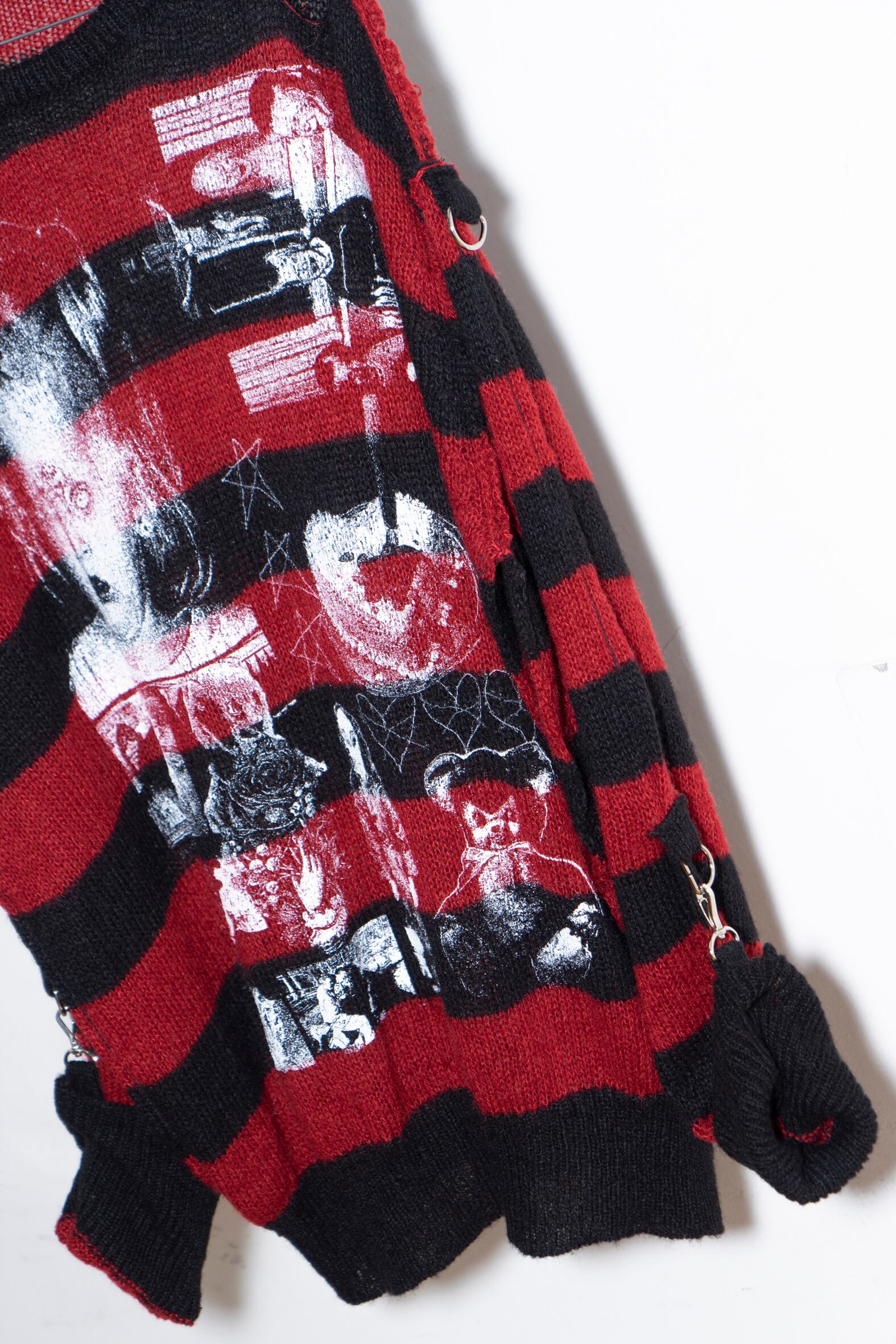 ボーダーニットに今期の象徴的なグラフィックがプリントされた1着。