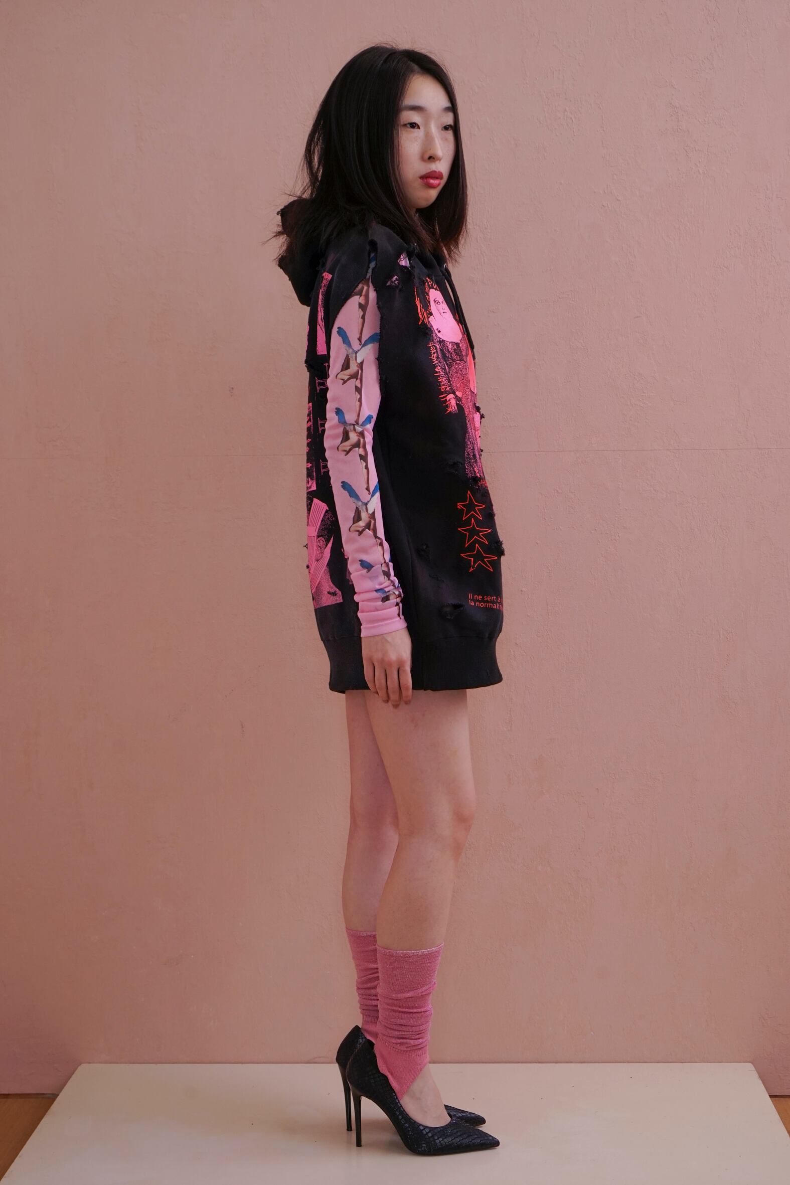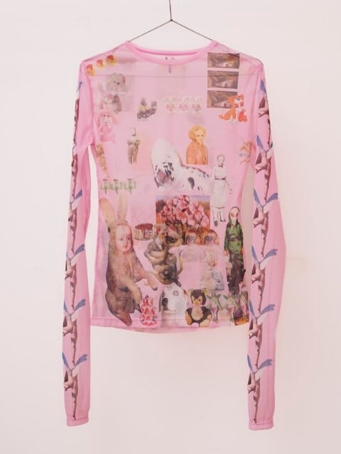POPなgraphicがコラージュされたskin tops。あえて手作業で切り抜きをし、掠れていたり、不完全なプリントの仕様もポイントです。