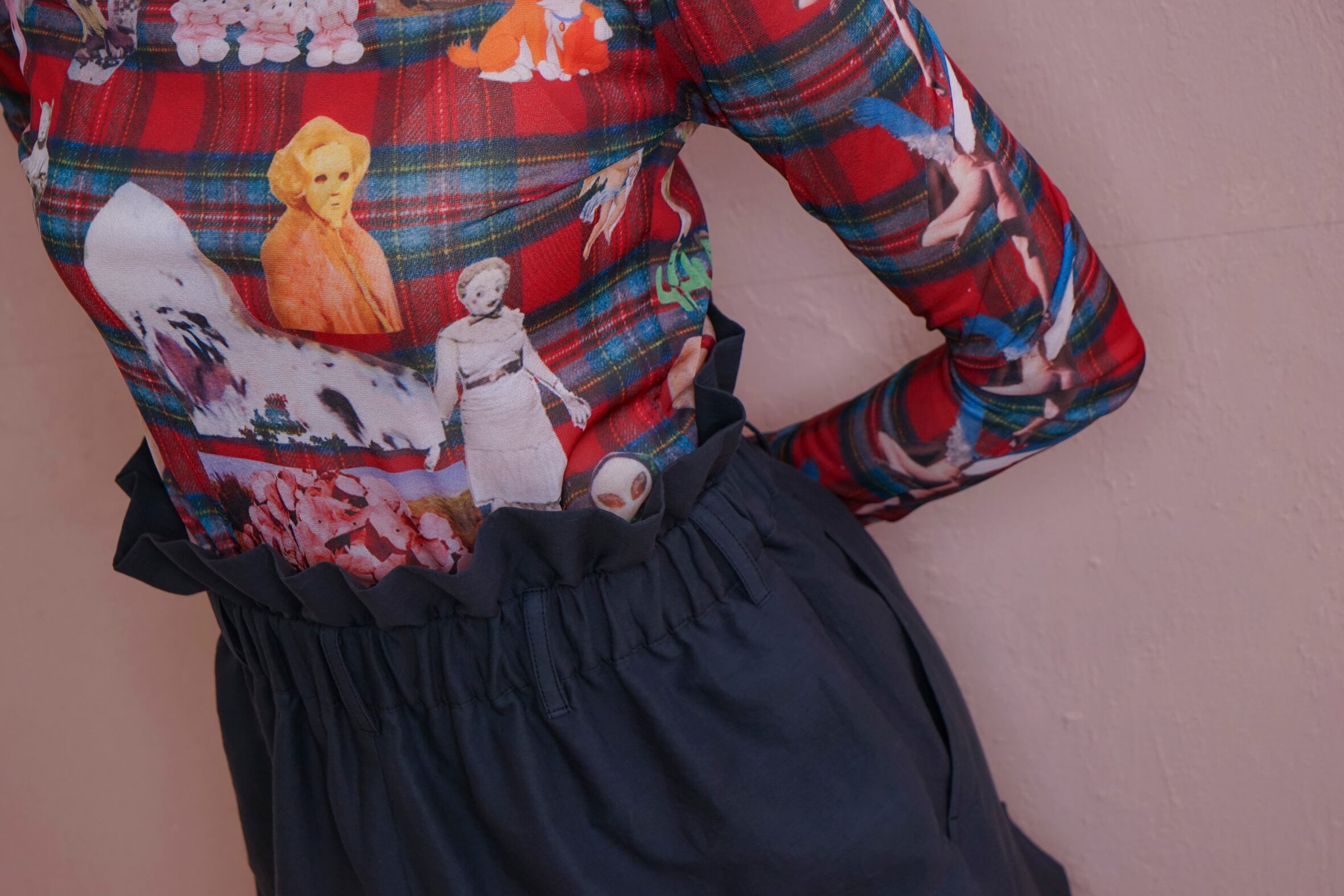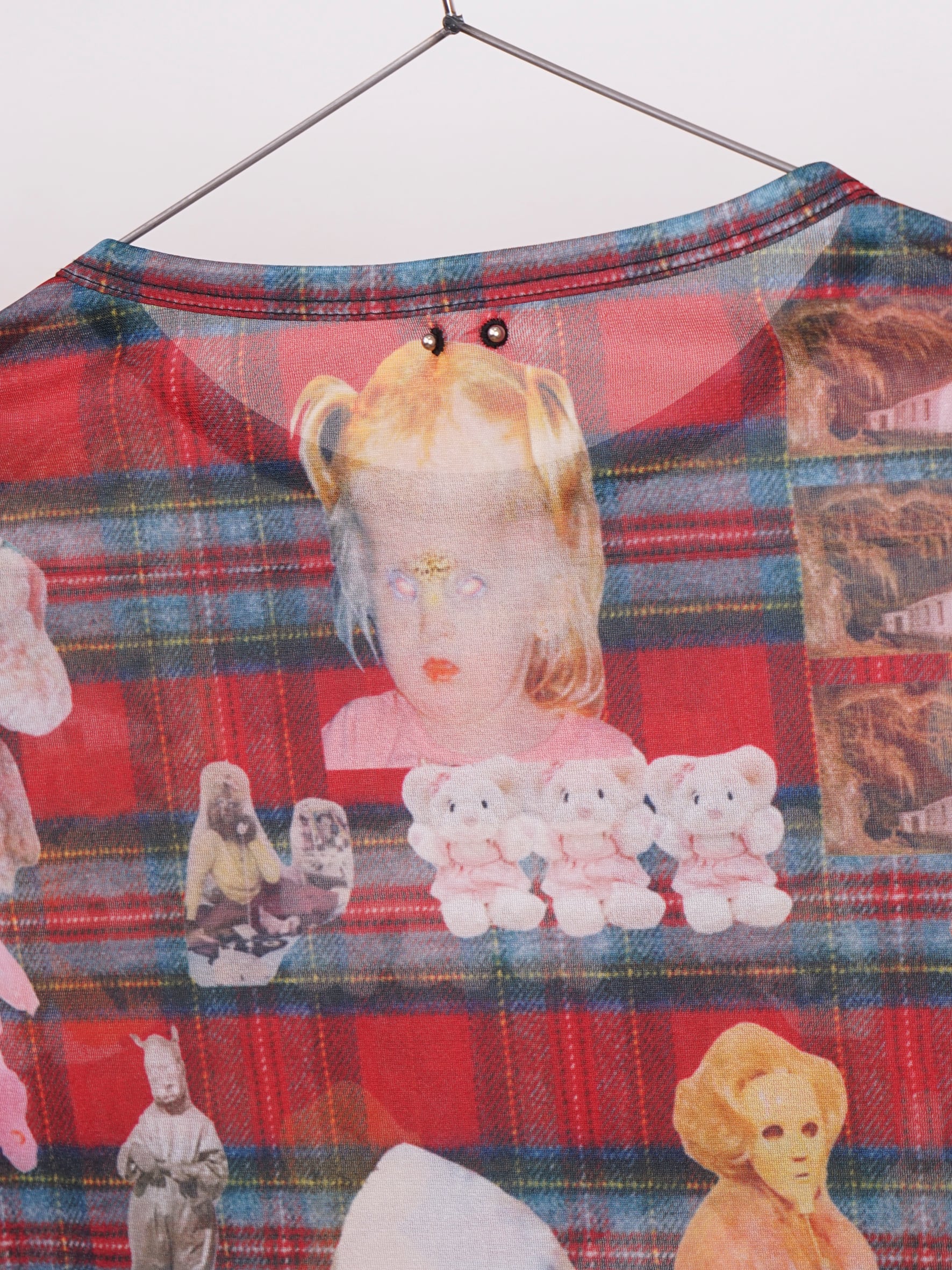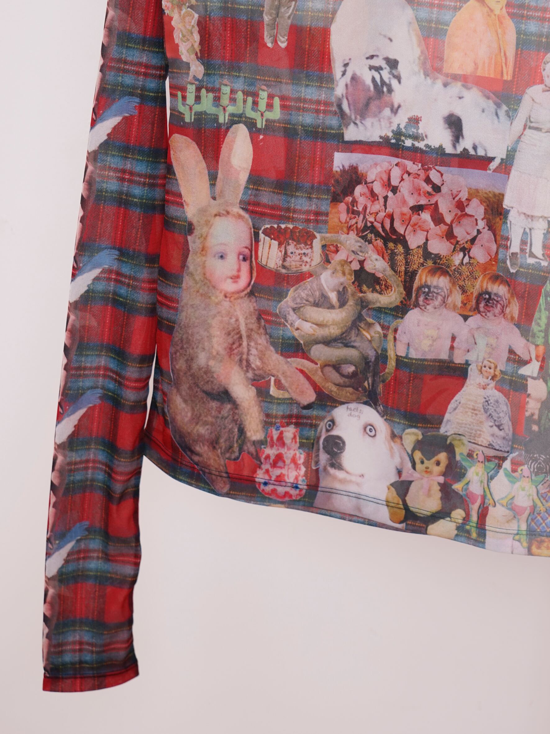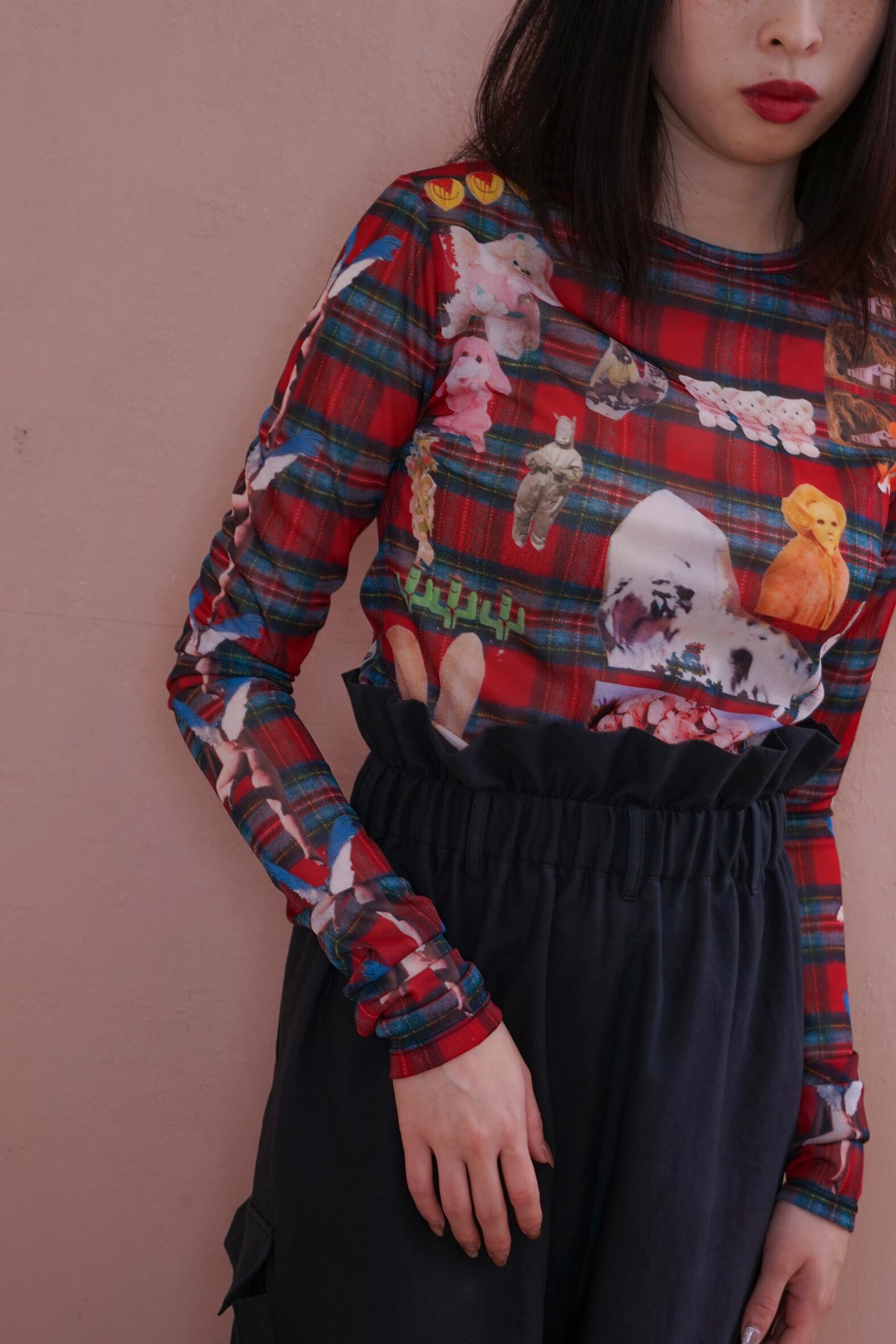 POPなgraphicがコラージュされたskin tops。あえて手作業で切り抜きをし、掠れていたり、不完全なプリントの仕様もポイントです。