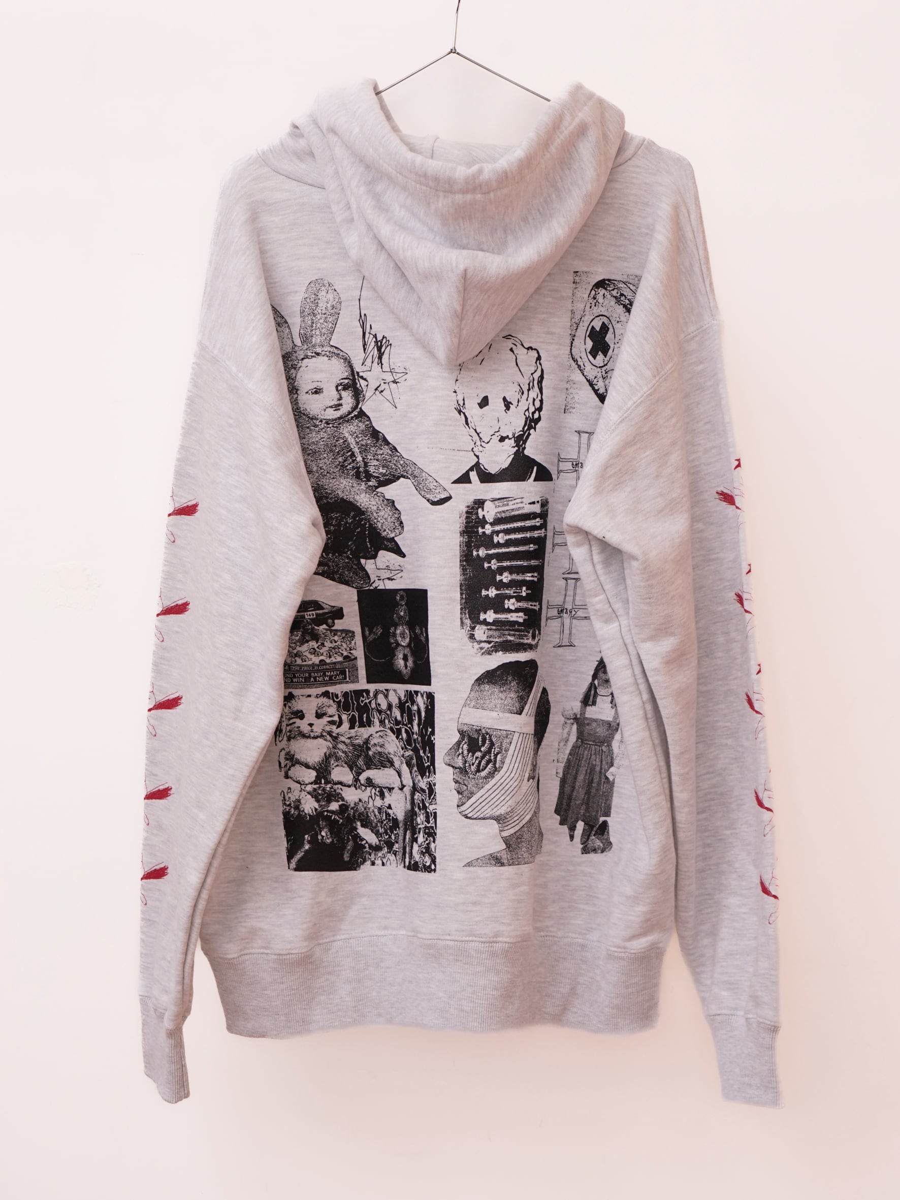 コレクションのimageを象徴するグラフィックHoodie。前シーズンから人気のHoddieの新作となります。こちらはダメージ、加工の無いverとなります。XLのサイズ感でユニセックスでご着用いただけます。