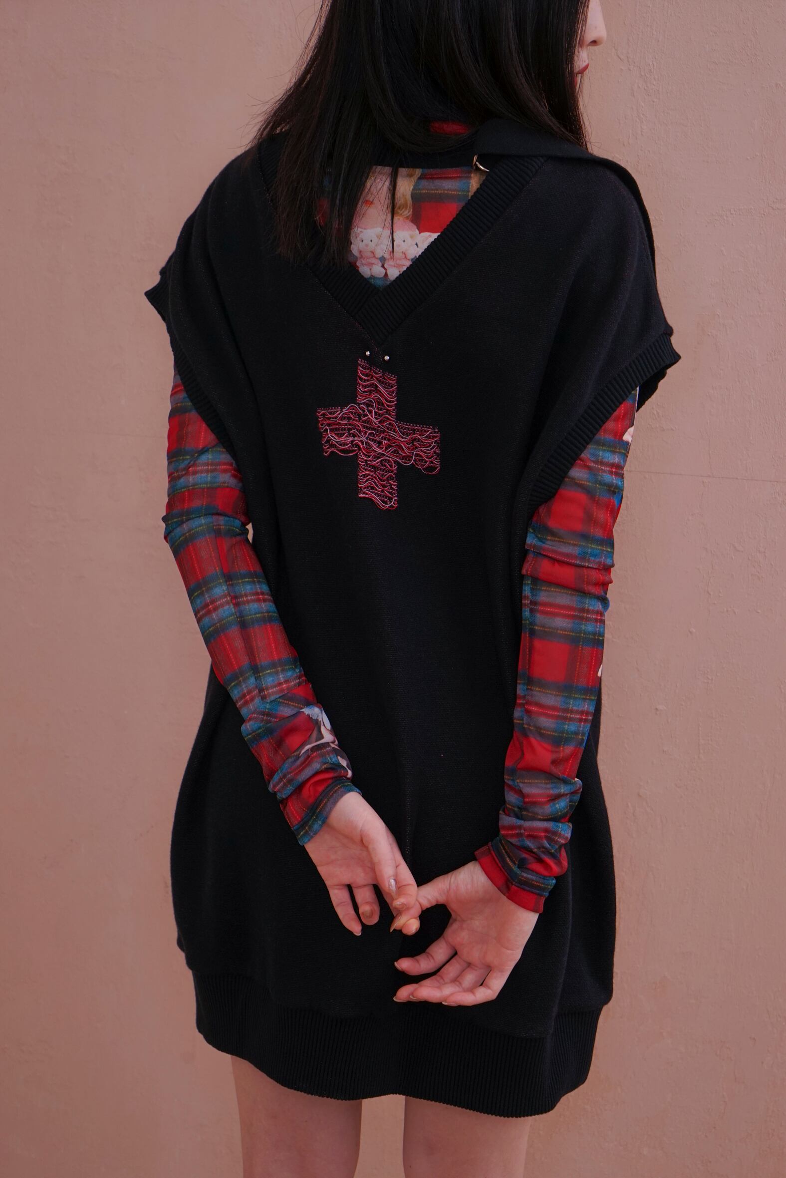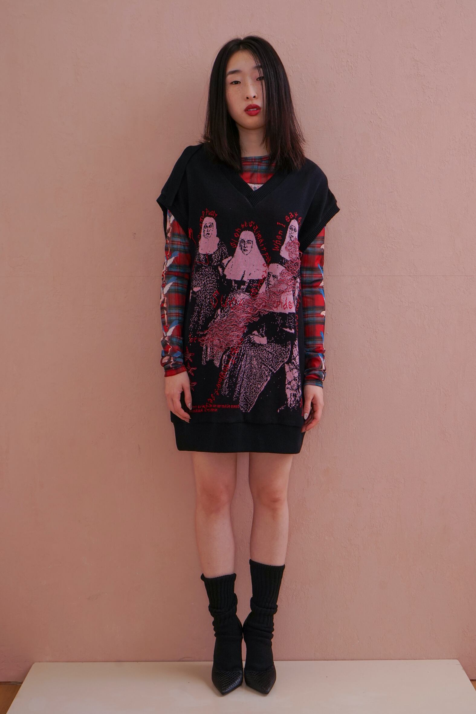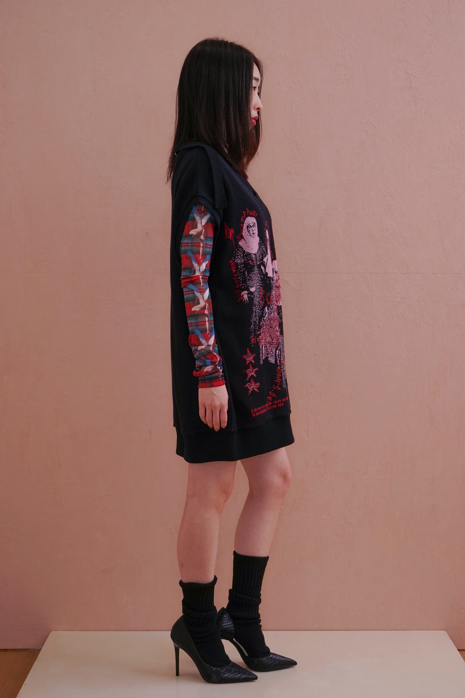 コレクションのimageを象徴するグラフィックknit vest。