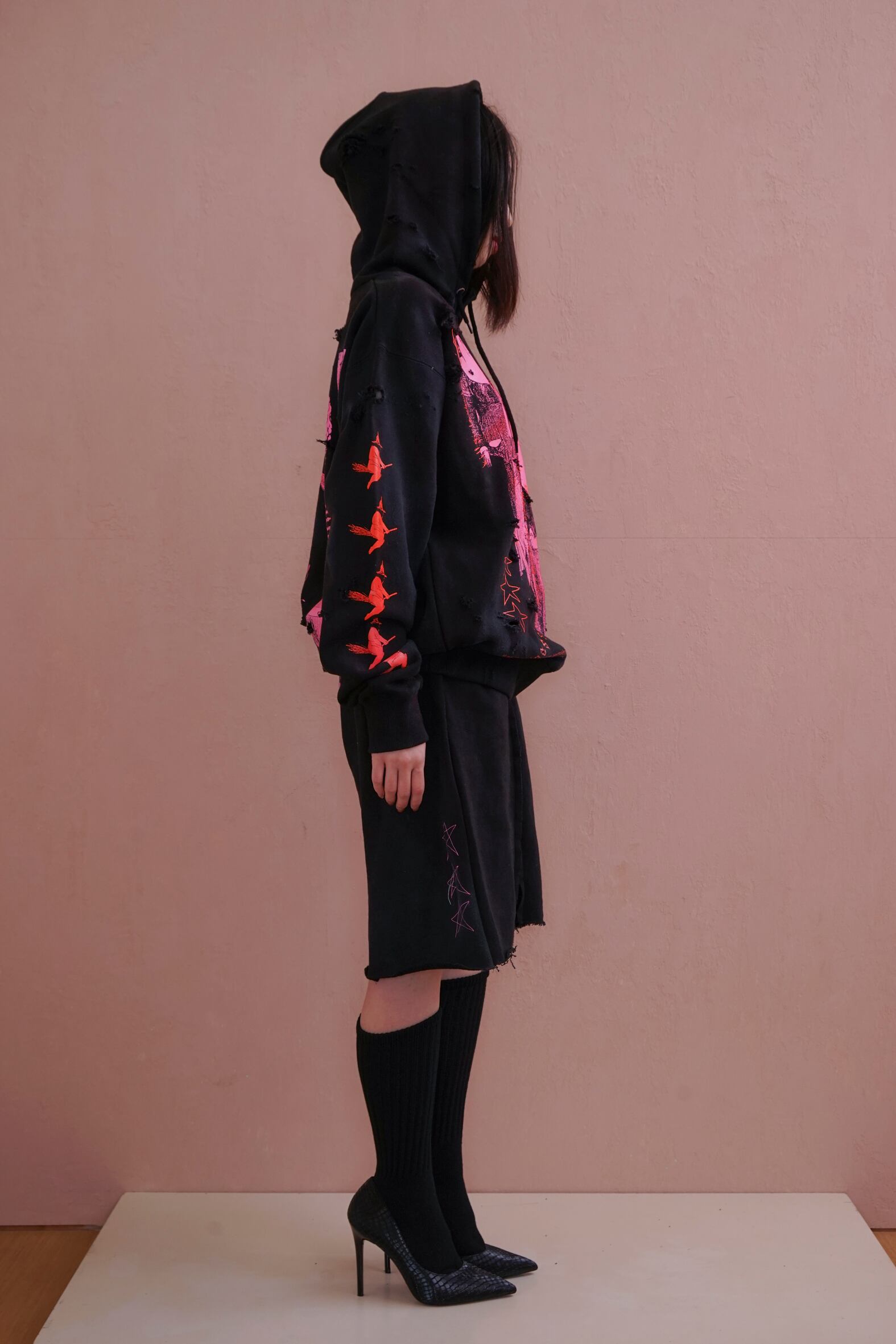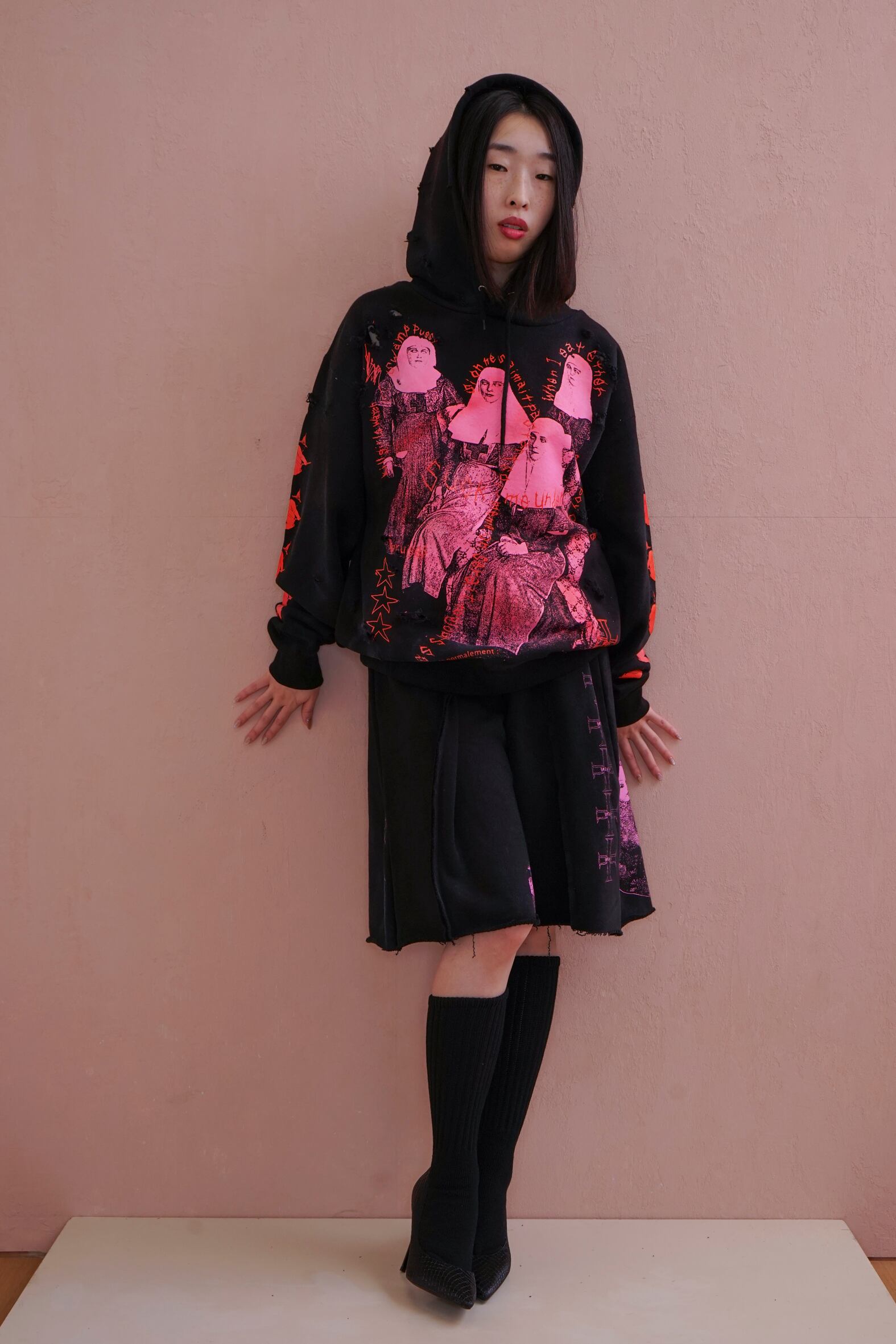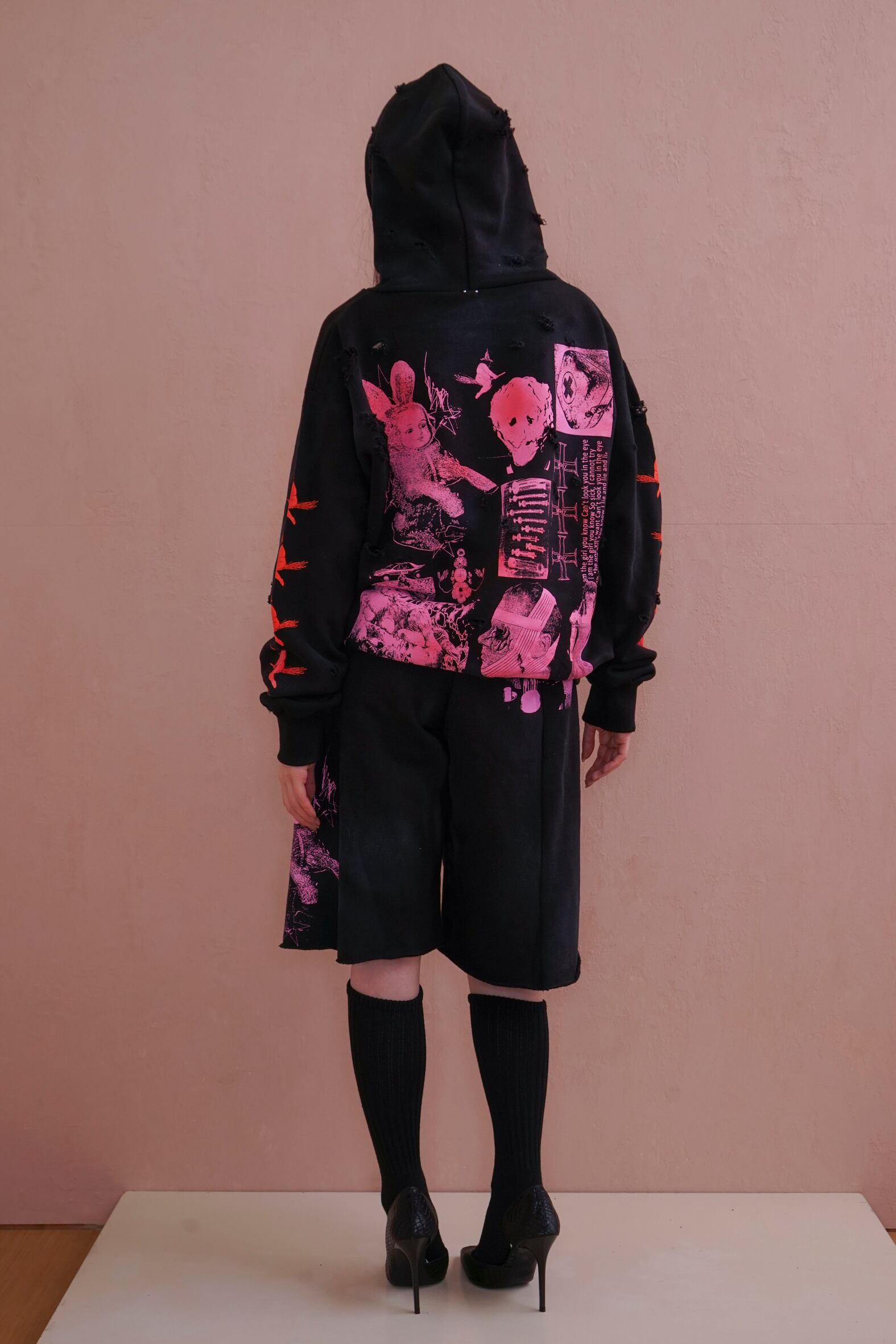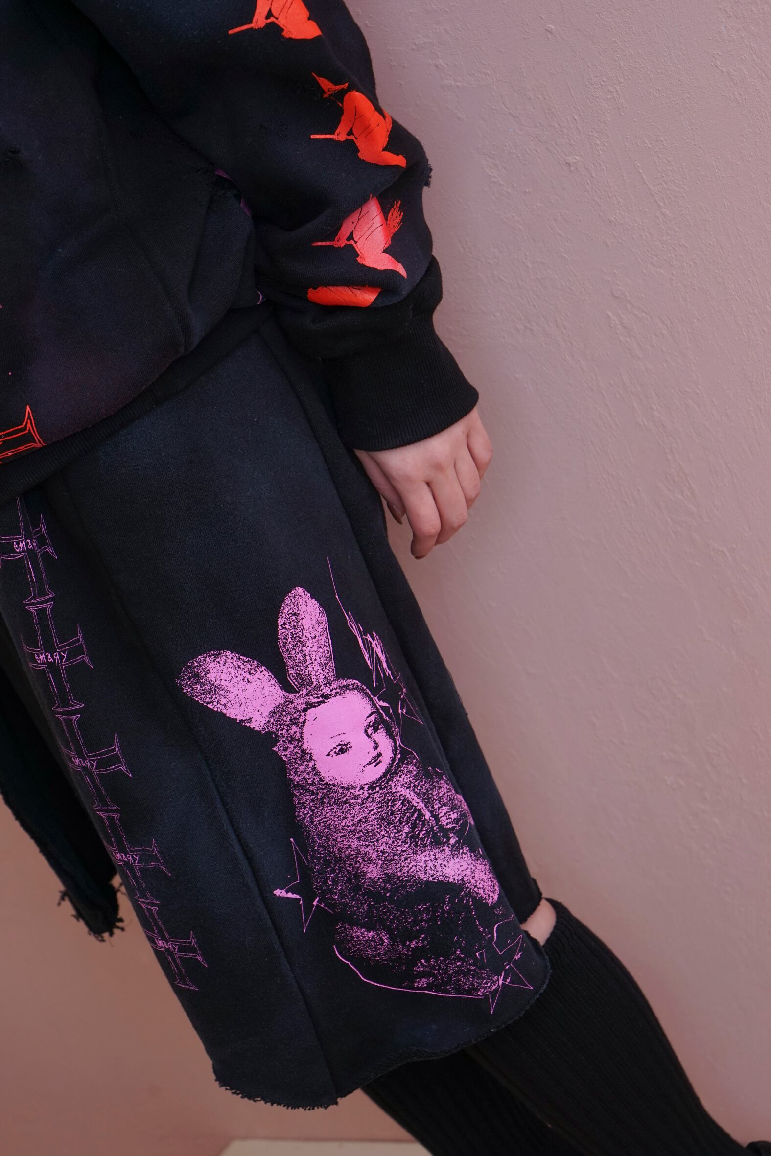 今シーズンのグラフィックをコラージュのようにシルクプリントしたbaggie pants。